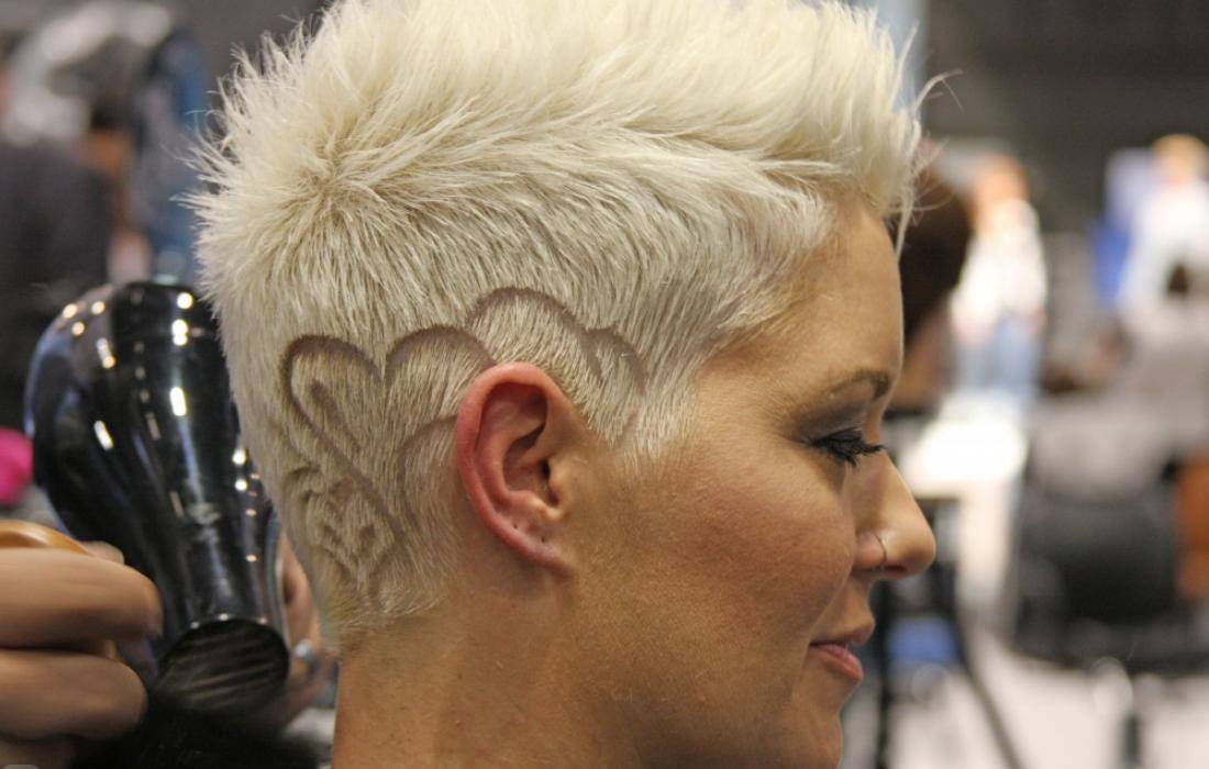 Популярность выбритого виска не падает. Поэтому с любым типом короткой стрижки девушки могут выбрить часть волос и это будет смотреться не менее эффектно. При выбритых висках с боку можно сделать интересное тонирование волос для создания эффекта объема. То же самое касается и выбритого затылка, когда с его помощью создается эффект шапочки. В последнее время можно не просто выбрить часть волос, но и создать целый рисунок, особенно если применить особую технику окрашивания.