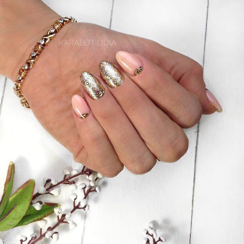 Техника опалового маникюра создаст неповторимое мерцание и блеск на ногтях, покрытых сочетанием лаков изысканных пастельных оттенков и блестящими элементами: пайетками, глиттером, камифубуками, фольгой.