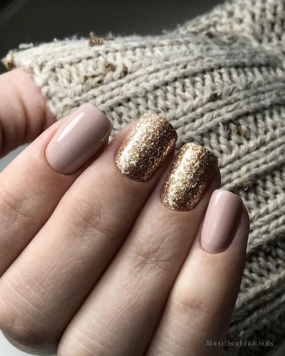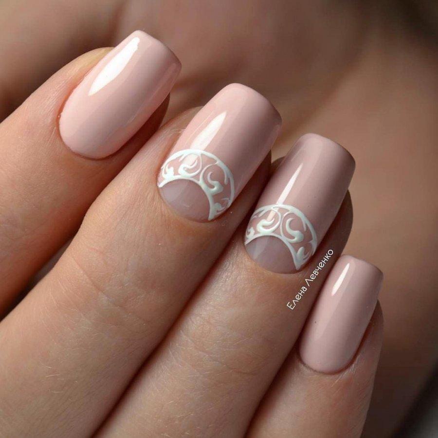 Бежевый маникюр шикарно смотрится с любым дизайном белого, золотого или серебряного оттенков.
