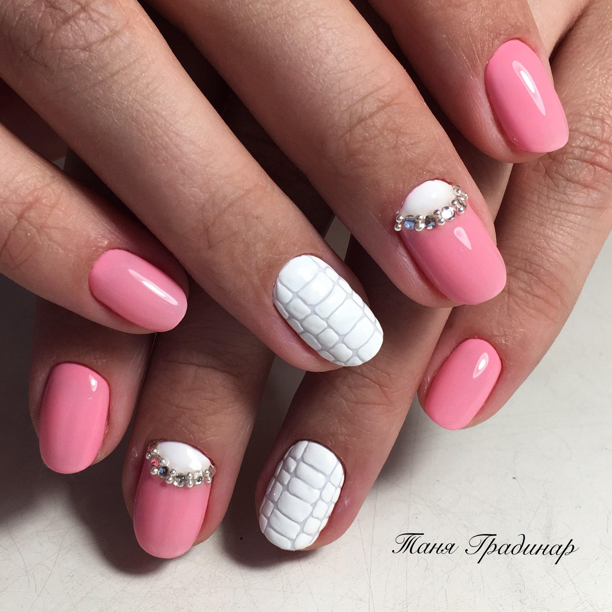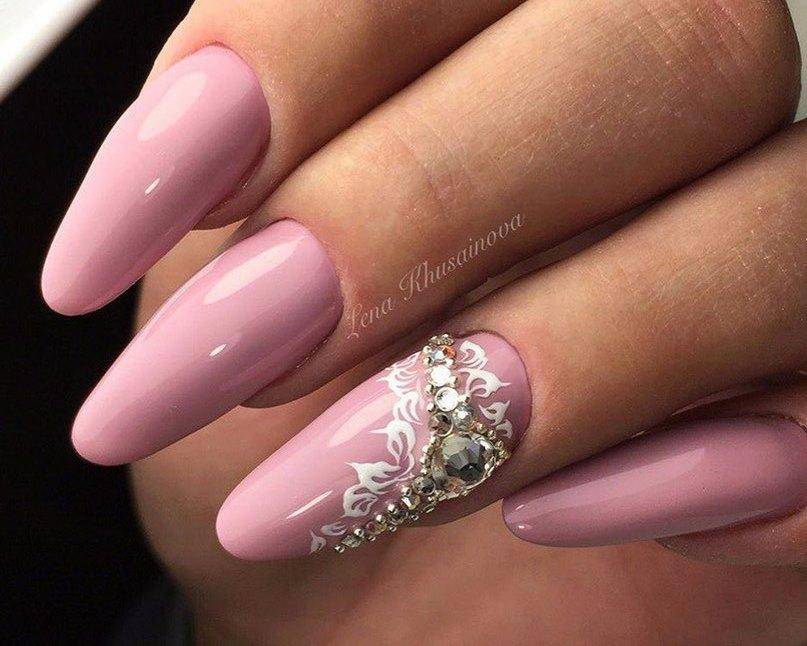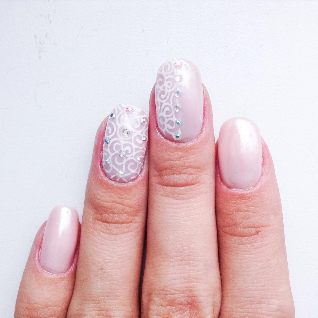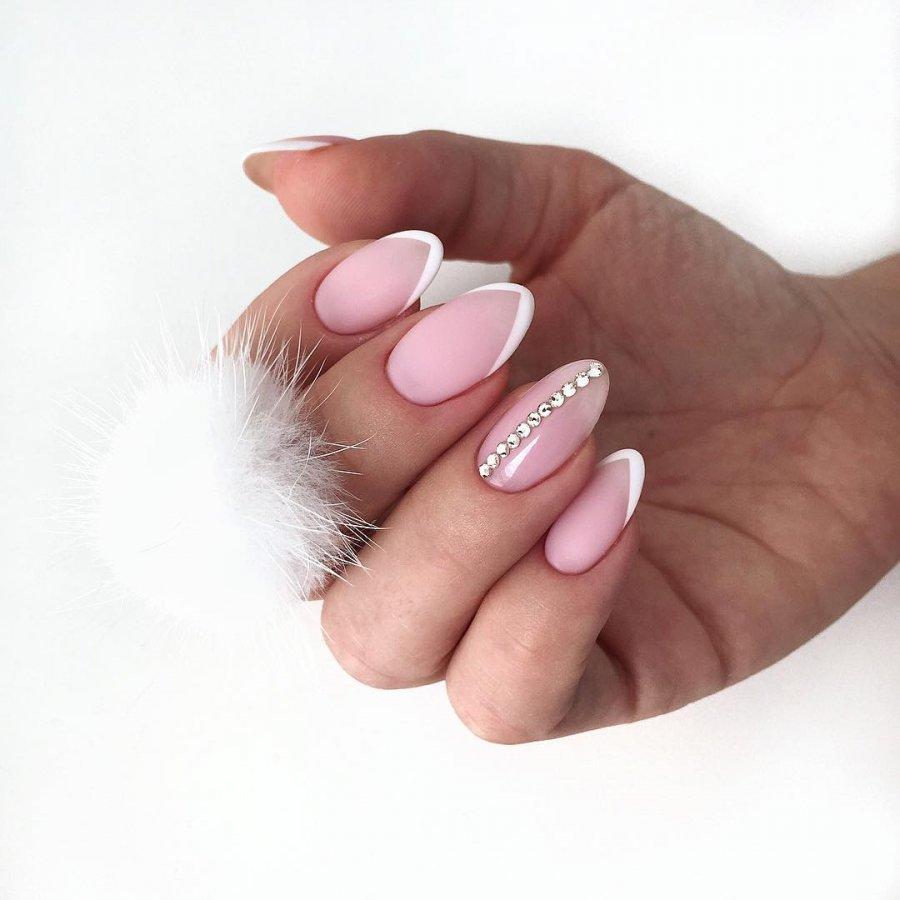 Очень нежно и воздушно смотрится розовый маникюр с френчем или стразами.