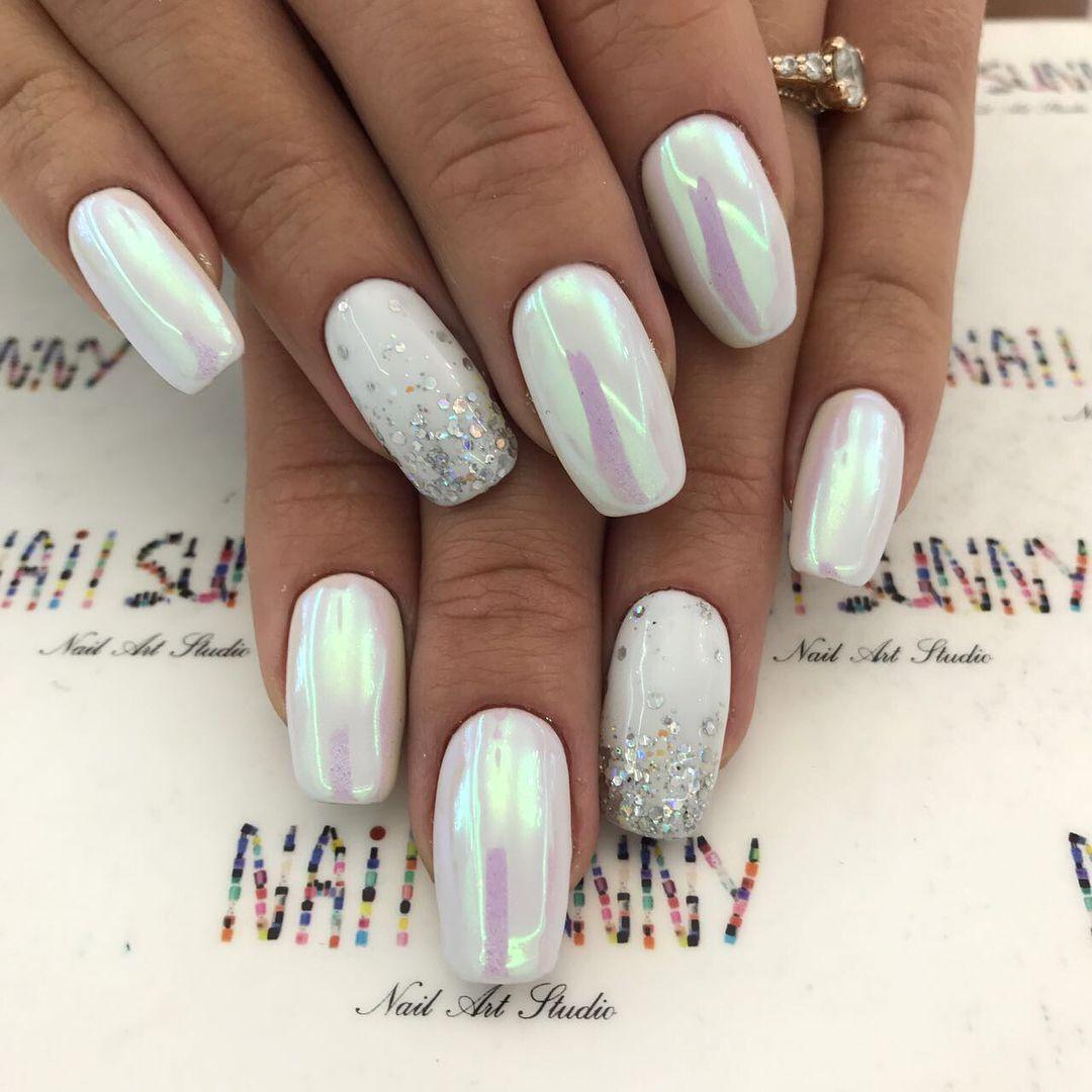 Создать невероятно сказочный и завораживающий эффект поможет протирание жемчуга актуальнее несколько сезонов подряд. Их популярность связана с тем, что благодаря особым микрочастицам в его составе происходит преломление света, из-за чего на ногтях появляются волшебные переливы.
