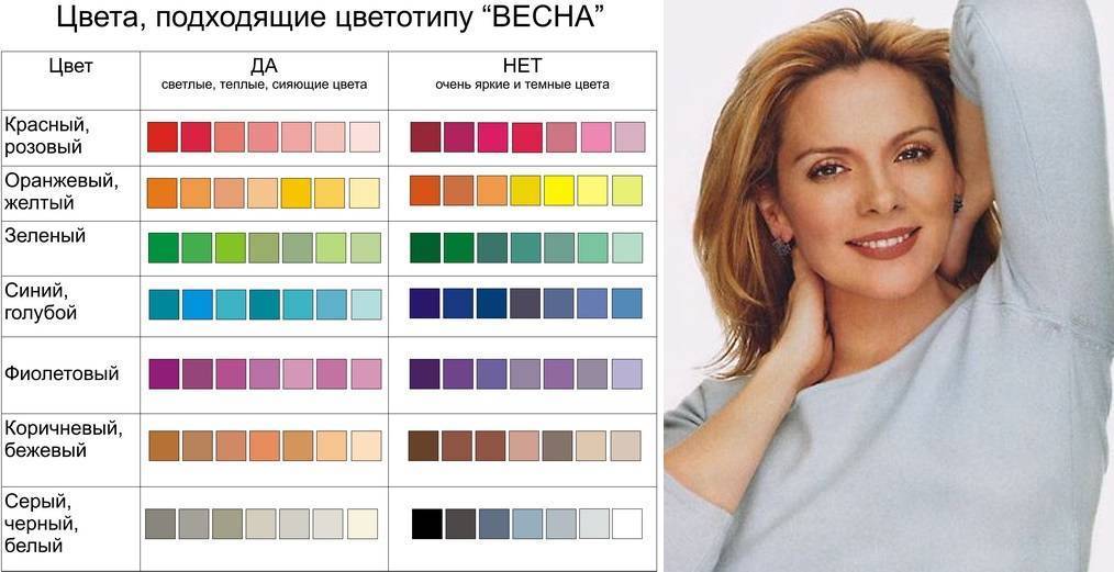 Для весеннего типа характерен светлый оттенок кожи, с легким естественным румянцем. В оттенках волос доминируют светлые варианты, отливающие золотом. Что касается карих глаз, то здесь тоже присутствуют светлые аккорды с золотистыми переливами.