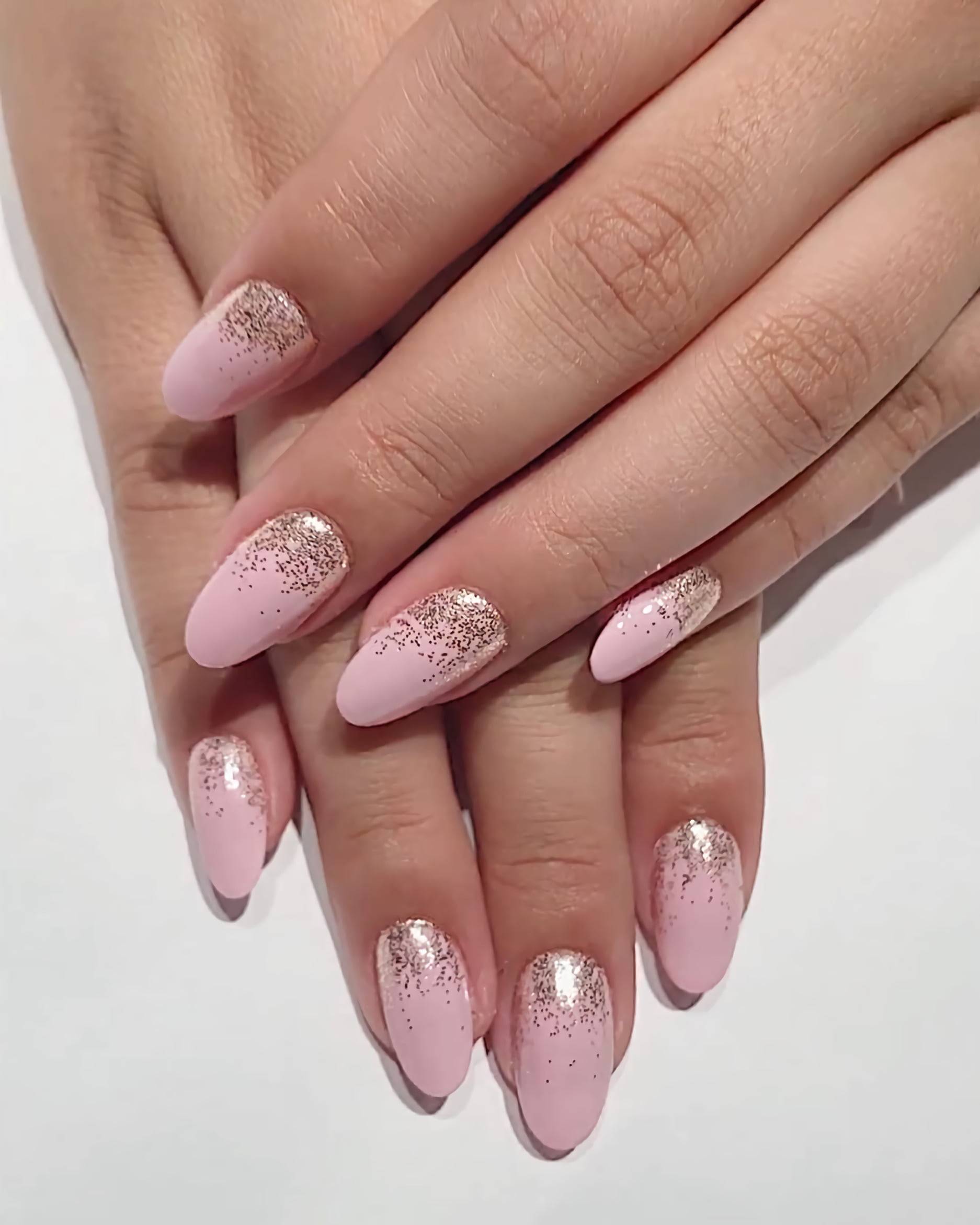Вместо того чтобы блестеть на кончиках ногтей, подумайте о таком образе, который добавляет блеск и сияние прямо над кутикулой.