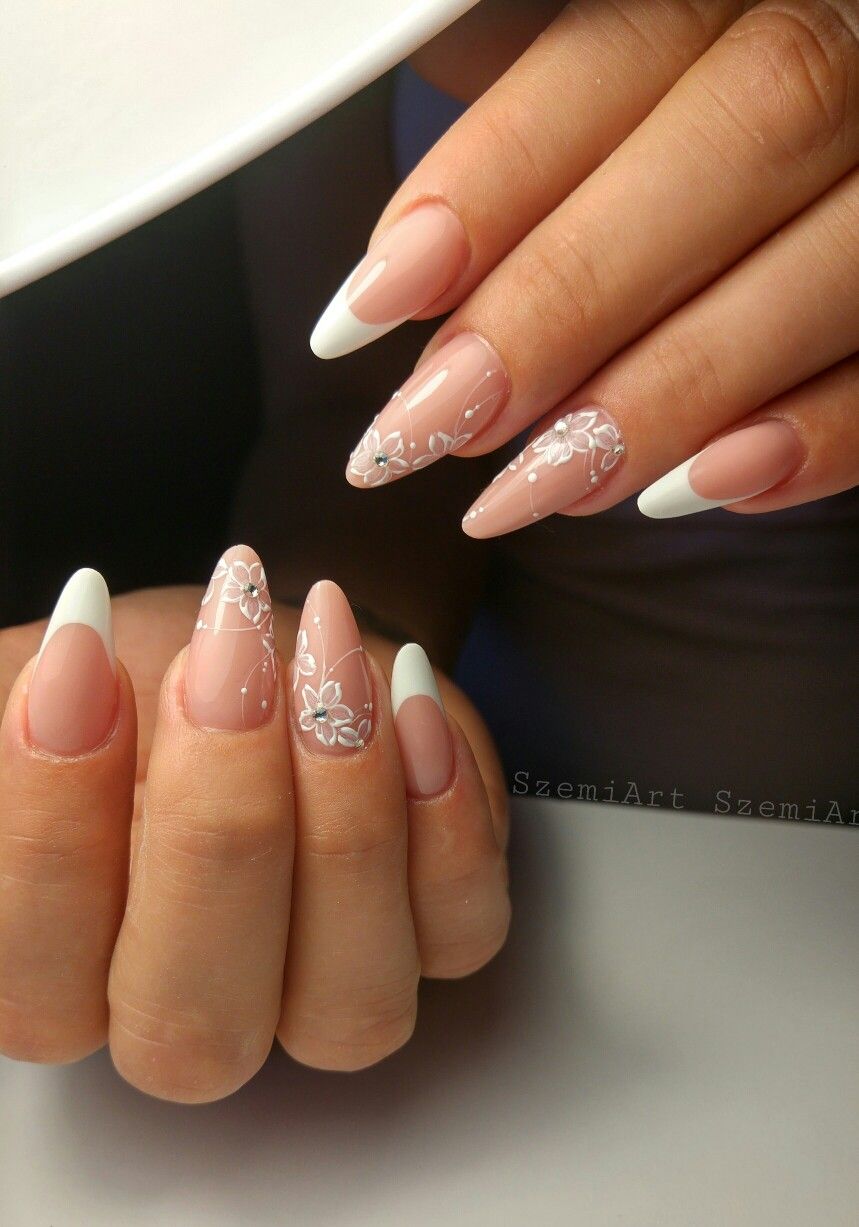 Техники маникюра в белых тонах на острые, закругленный, квадратные ногти.