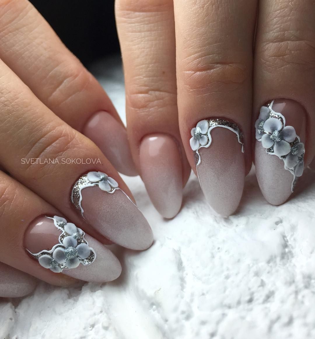 Акриловая лепка — это разновидность объемной модели, которая выполняется специальной густой пудрой и является актуальным трендом уже несколько сезонов подряд. Что касается тех же акриловых рисунков на свадебном маникюре, то цветочные мотивы по-прежнему остаются фаворитом.