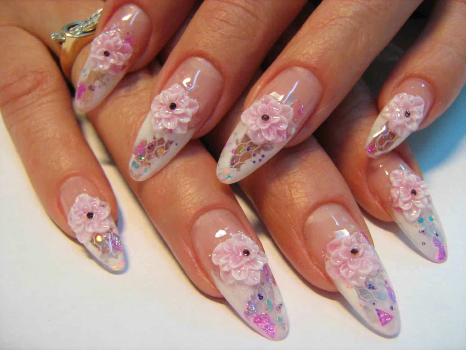Часто при создании дизайна ногтей на свадьбу используют объемные цветы. Создаются они посредством лепки или накладывания гель лака слой за слоем, с использованием цветных оттенков. Цветочек может быть круглым, в виде бусины, или расправленными, с украшениями в виде небольших страз или бульонок. И лучше, если этот дизайн будет на безымянном пальчике.