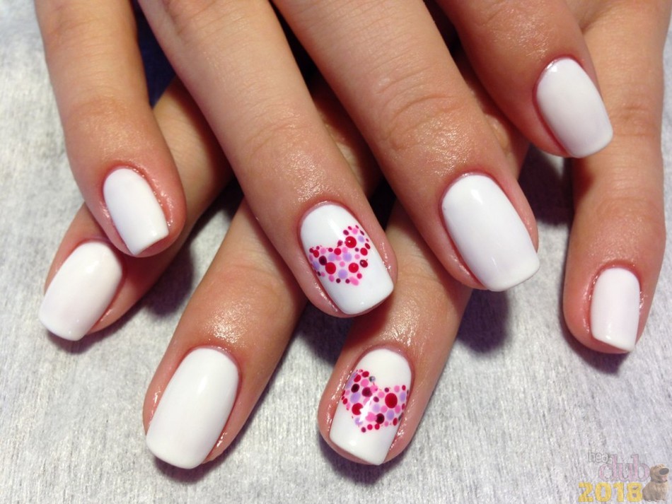 Невесты обожают такое украшение на ногти, ведь именно сердце символизирует любовь, а значит как нельзя кстати подходит для данного праздника. Профессионал своего дела сделает сердечко из чего угодно, замечательно выглядят варианты из бульонок, камней, лент, а также нарисованные.