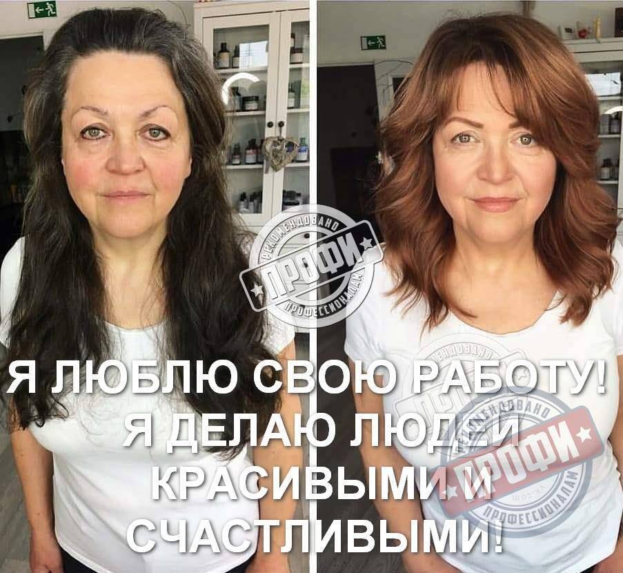 На этом фото «До и после преображения стилистом» отчетливо видно: у женщины были тонкие, задранные брови, но это её не молодило. Брови средней ширины на том месте, где им и положено быть природой — омолодили и освежили лицо.