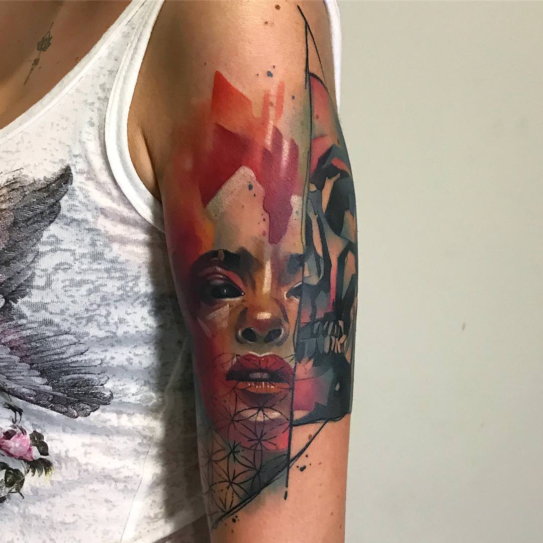 Какой бы прекрасной и самодостаточной ни была акварель сама по себе, всегда остается место для экспериментов. В современном тату-искусстве смелость только поощряется, именно она и помогает ему развиваться, становиться все более интересным, многогранным и впечатляющим.