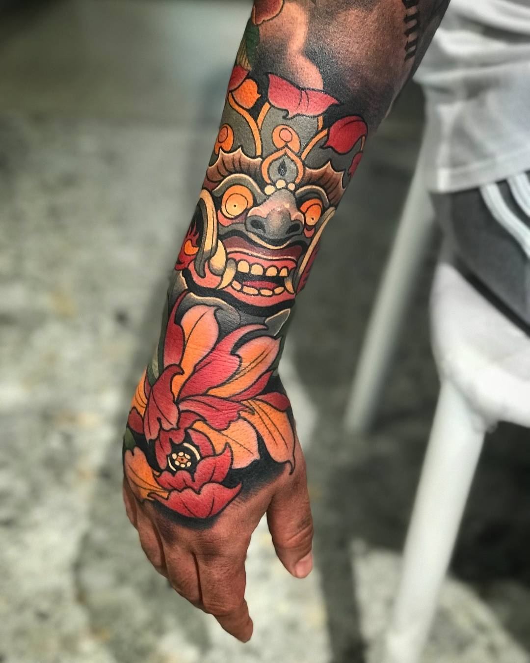 Предплечье — часто на этом месте наносят те изображения, которые призваны именно украсить, а не нести сакральный смысл. Впрочем, такая заметная часть тела отлично подходит для того, чтобы донести какую-то идею. Вытянутая же форма предплечья позволяет реализовать как можно больше деталей.