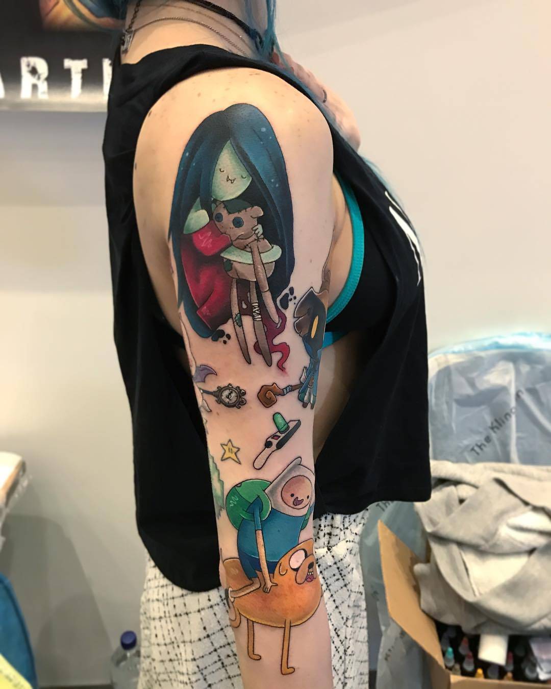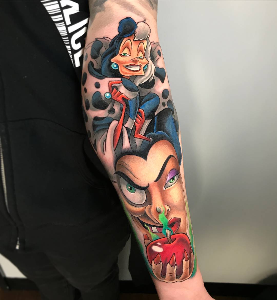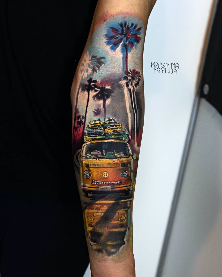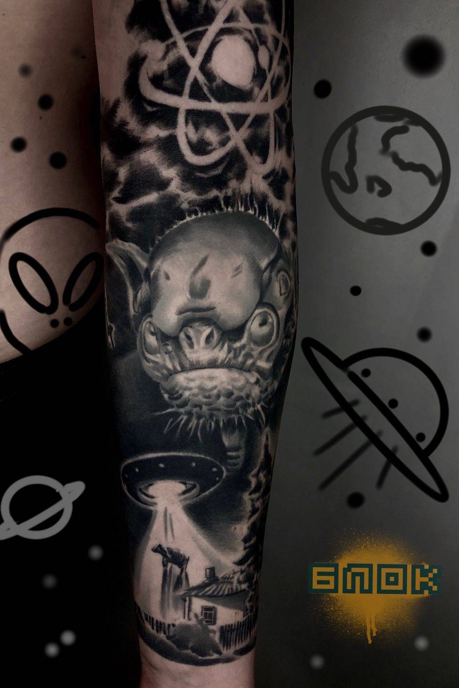Особенно удачно на плече смотрятся картины средних размеров. Впрочем, их можно удачно объединить с татуировками предплечья.