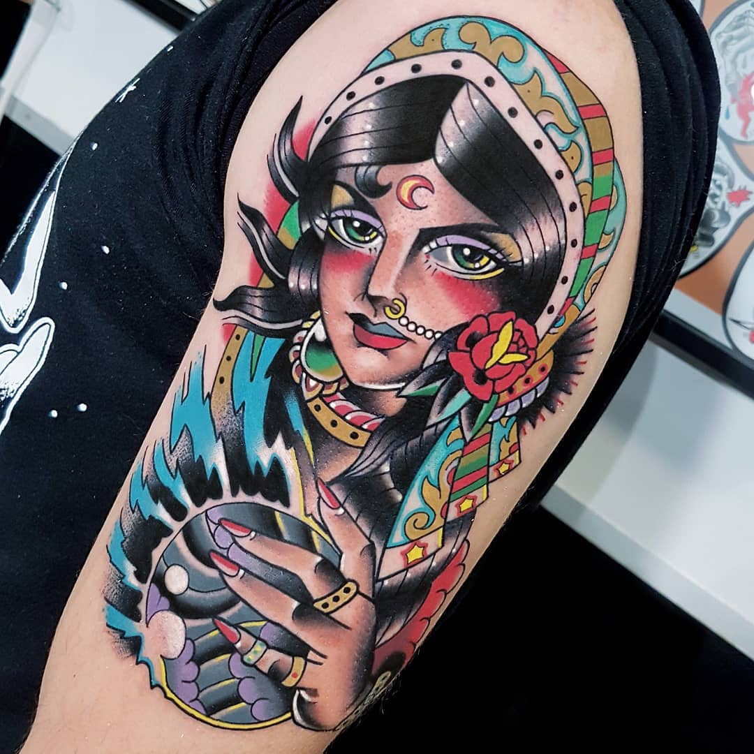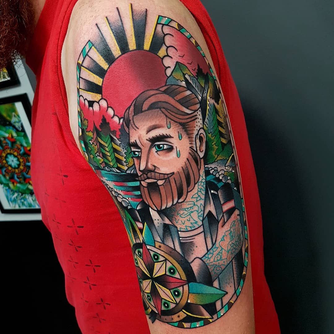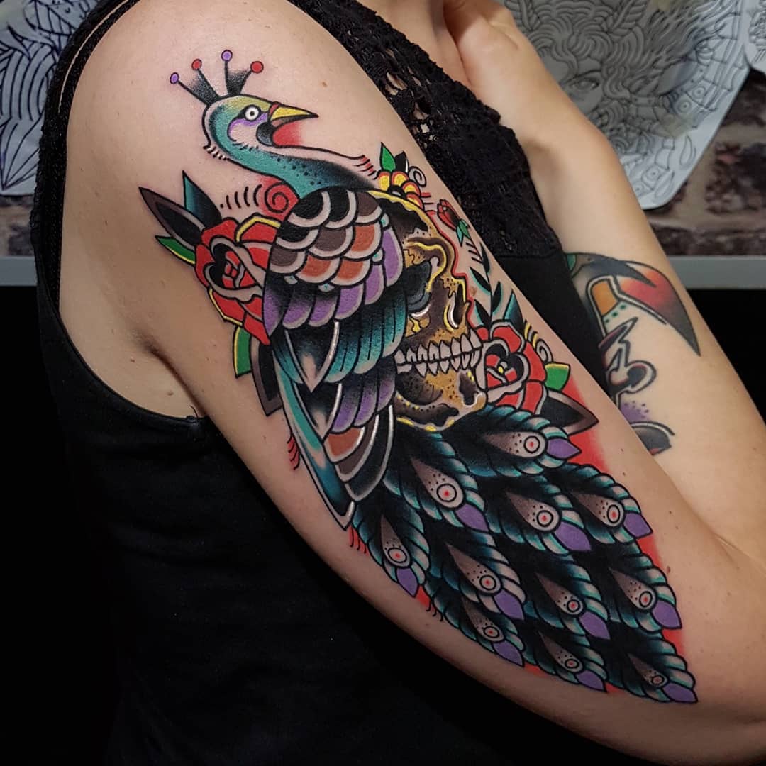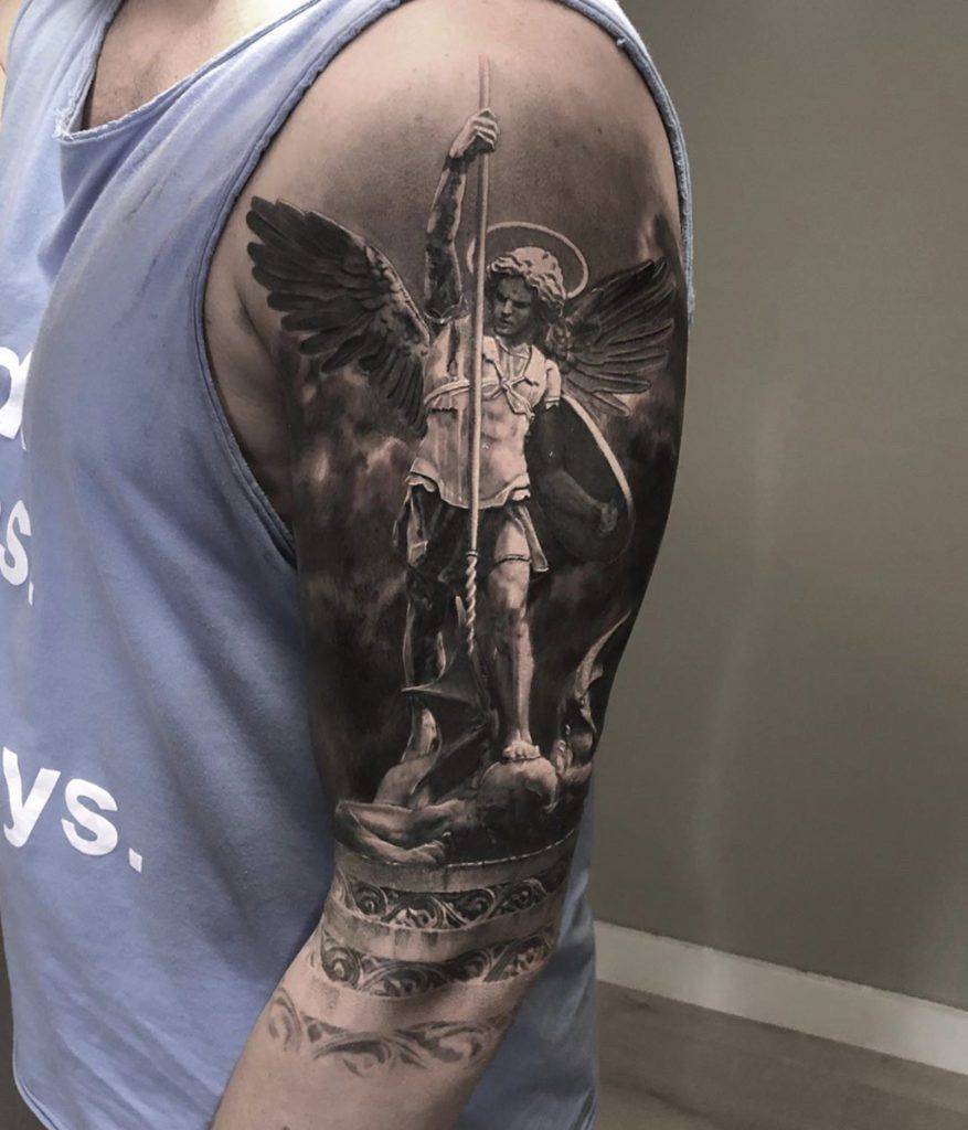 Плечо — наиболее распространённый вариант как в древности, так и в наши дни. Объяснить данный выбор можно тем, что такое тату смотрится очень мужественно. К тому же подобное решение практично, ведь татуировку на плече вполне можно скрыть под одеждой — это и при дресс-коде пригодится, и выгорания не будет повода опасаться. Выраженные же контуры тела позволят создать поистине выразительные и объёмные шедевры.