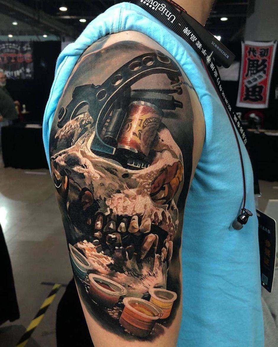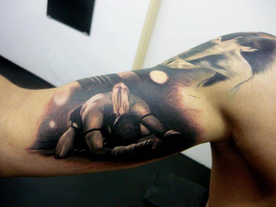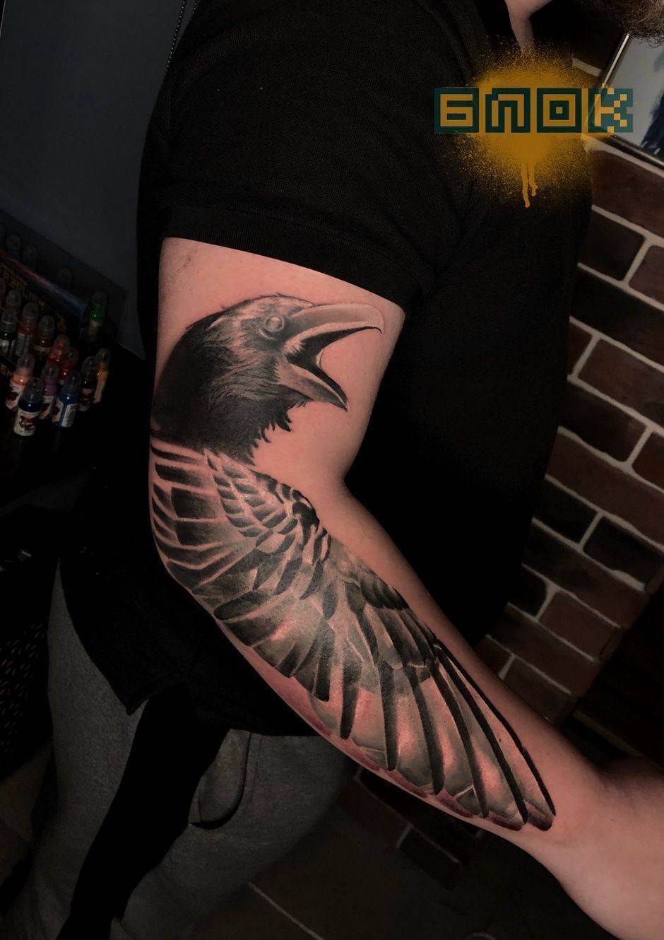Бицепс — ещё один вариант для безболезненного нанесения татуировки. На накачанных руках изображения будут смотреться превосходно, а при желании демонстрировать их время от времени можно выбрать внутреннюю часть бицепса. Отсюда вполне можно начать создавать рукав.