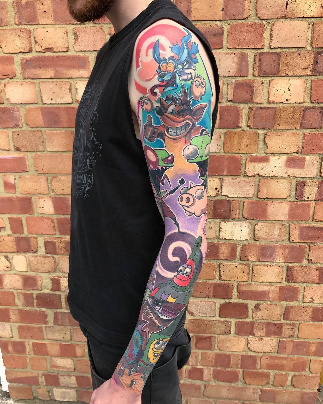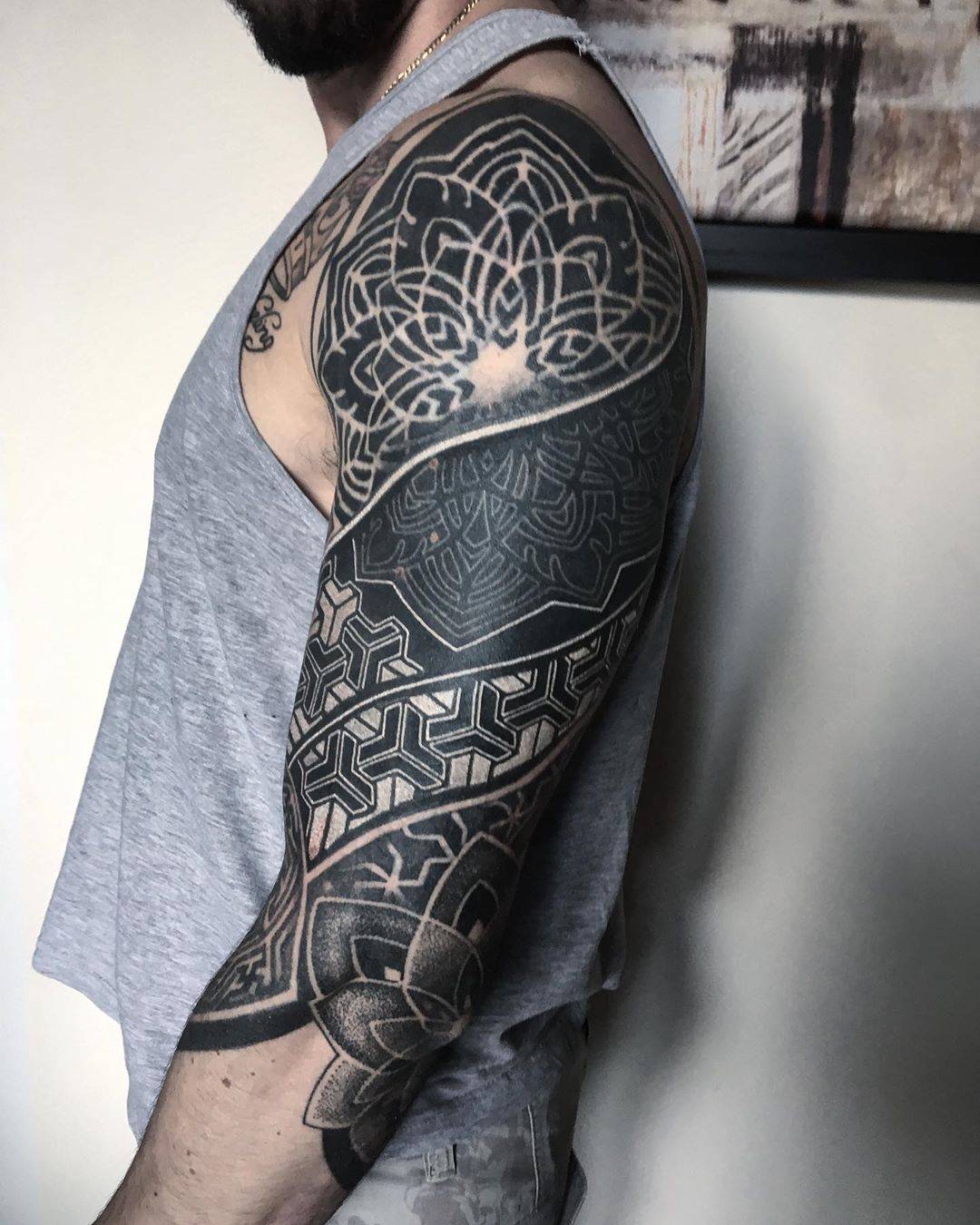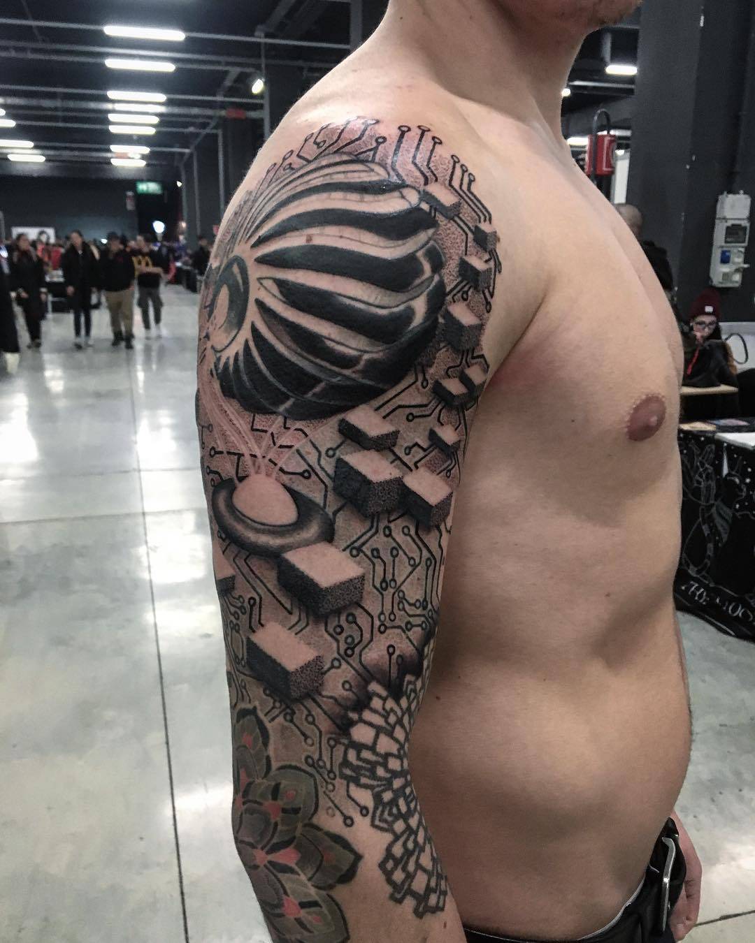 Бицепс — ещё один вариант для безболезненного нанесения татуировки. На накачанных руках изображения будут смотреться превосходно, а при желании демонстрировать их время от времени можно выбрать внутреннюю часть бицепса. Отсюда вполне можно начать создавать рукав.