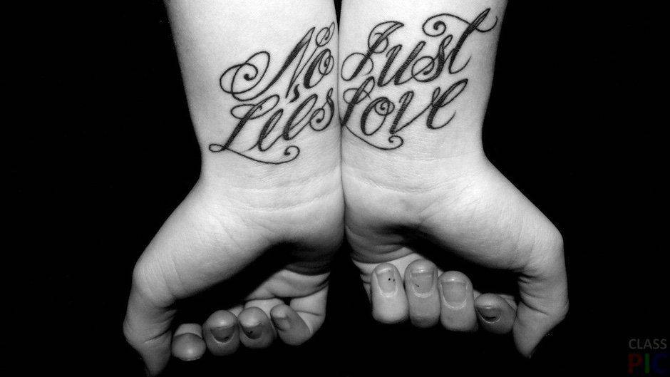 Некоторые молодые особы любят варианты посложнее, сделав акцент на браслете — надписи на руке. Очарование придает необычный шрифт, тату — надпись на латинском языке, выразив силу интеллекта.