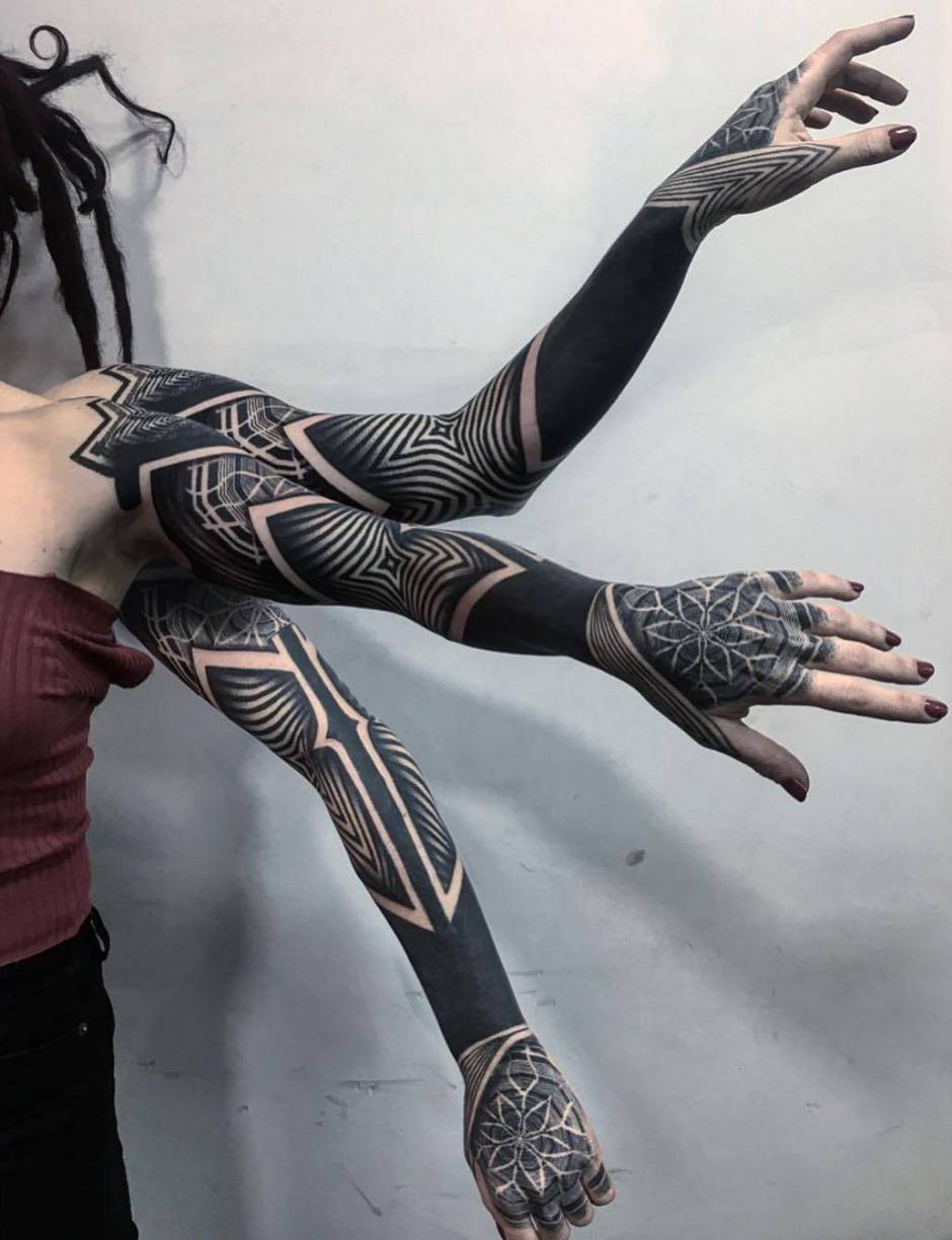 Тату-браслеты с геометрическими рисунками придутся по вкусу девушкам «с характером»