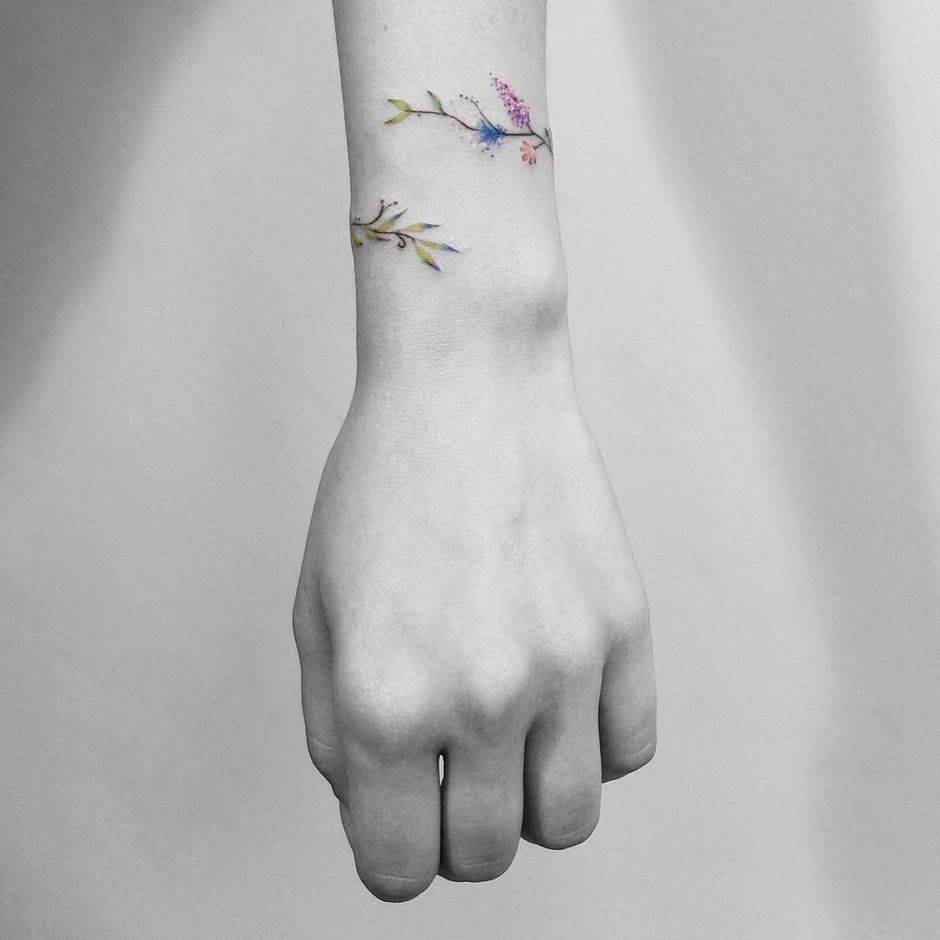 Запястье — это преимущественно женский выбор, но и мужчины могут неплохо украсить себя таким образом. Желательно выбирать чёрную либо тёмно-синюю гамму. Зимой такое тату легко закрывается рукавом, а летом — браслетом или часами. Правда, солнечные лучи и моющие средства влияют на картинку, поэтому готовьтесь к тому, что её наверняка придётся обновлять.