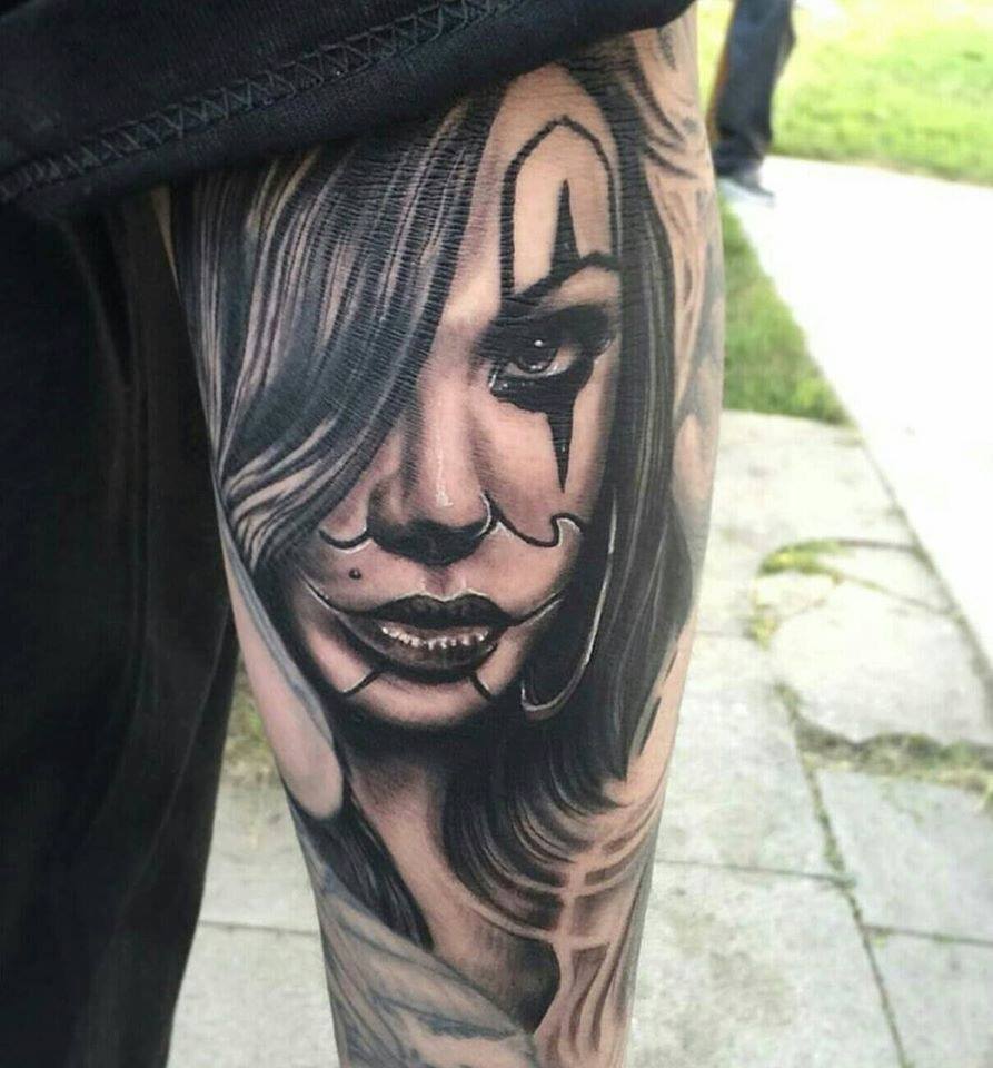 Стиль чикано, тату-эскизы привлекает леди их же портретами. Если мужчины наносят женские образы, чтобы подчеркнуть тягу к ним, то девушки выбирают зарисовки, чтобы передать свое эмоциональное состояние.