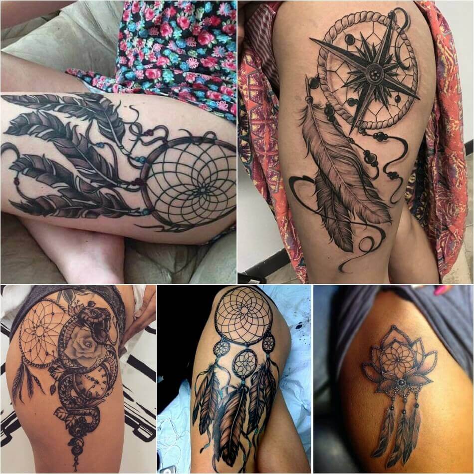 Татуировка с ловцом снов полюбилась многим девушкам из-за ее утонченного кружевного узора. Тонкие нити с перьями, при грамотно расположенном эскизе могут подчеркнуть достоинства женской фигуры.