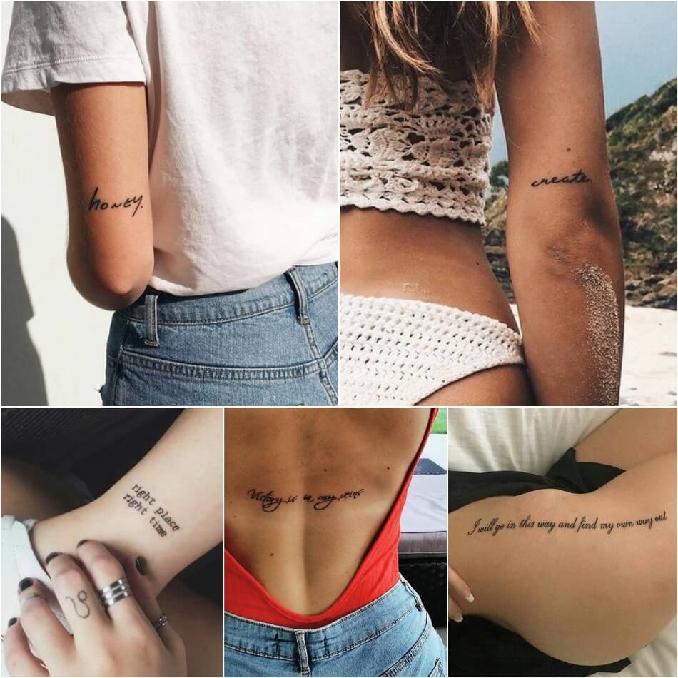 Небольшие надписи, которые мотивируют к совершенству или движению нередко становятся татуировками для девушек. Тату, которые емко и кратко могут передать жизненную позицию или напоминать и важных событиях в жизни никогда не потеряют своей актуальности.