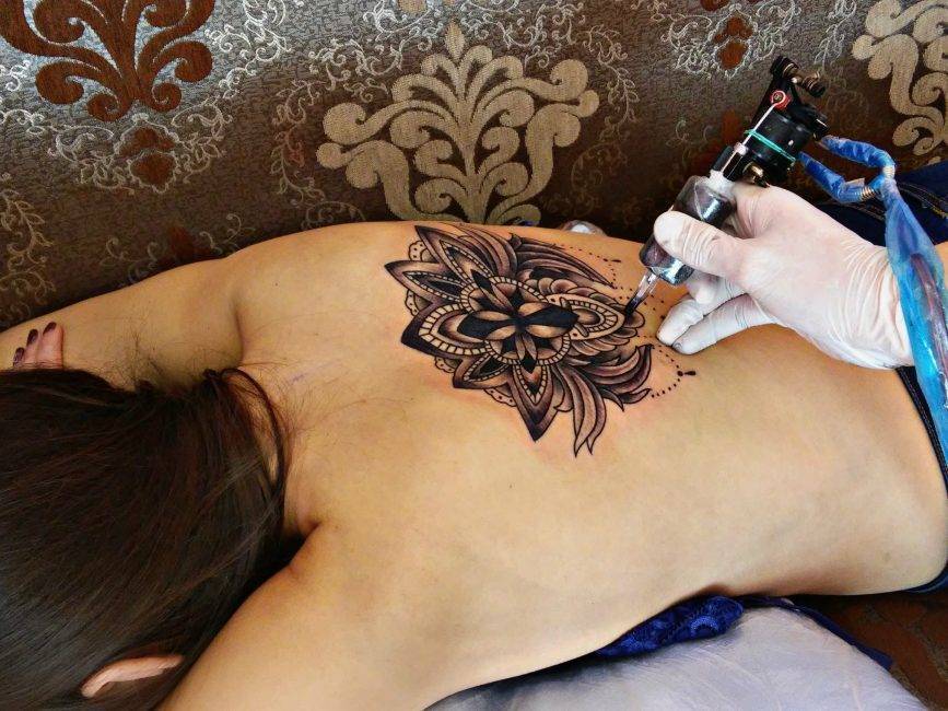 Боль при нанесении тату не сильная, поэтому многие отказываются от анестезии. При процедуре может выступать немного крови, что является нормой.