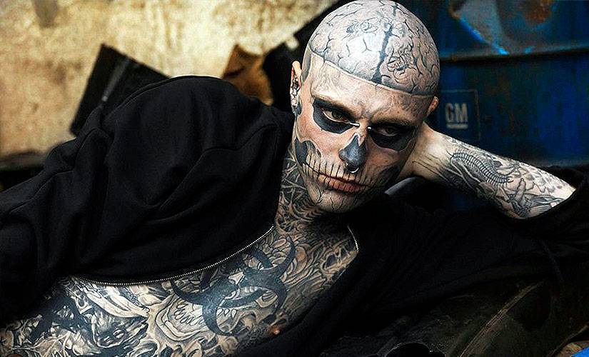Среди зарубежных знаменитостей следует выделить Рика Дженеста. Рик – канадская модель, его также называют «человек с татуировкой черепа на лице», а все из-за того, что он нанес на свой лик лицо скелета.