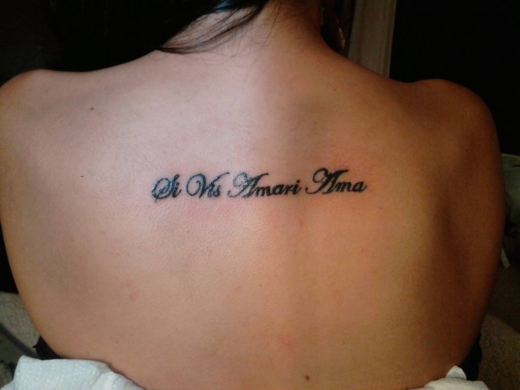 Если тату надпись на латыни – объемная, то хорошо будет выглядеть на спине, под ребрами, на плече. Также сейчас в моде половинки надписей, разбитых на две части. Одна часть фразы набивается на правую, другая на левую руку. Либо все набивается на разные ноги, стороны груди или спины. Если совместить руки, то цельная тату надпись на латыни раскроет суть послания.