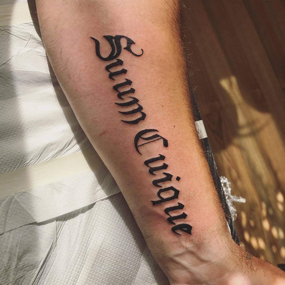 Это может быть девиз, имя любимого человека или слова из любимой песни. Главное помнить, что нанесенный текст останется навсегда. Поэтому к выбору стоит подойти очень ответственно.