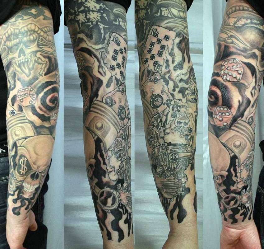 Случаются ситуации, когда мужчина на половине пути бросает идею создавать тату-рукав. При этом он ограничивается только 1\2 части руки или ее 1\4 частью. Если заложен эскиз тату рукава для мужчины, можно со временем изображение набить до конца. Помимо этого, мужчина сможет еще несколько раз подумать про какие-то перемены в оставшейся части, которая не закончена.
