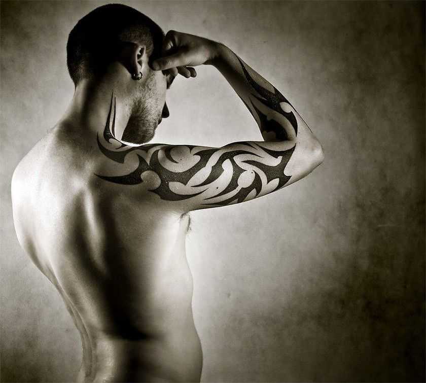- Во-вторых, если мужчина уже имеет на какой-то части руки татуировку, мастеру придется подбирать определенный эскиз, дабы все компоненты связались между собой. Но на такую работу потребуется больше средств и времени, вследствие чего получится отличная композиция.