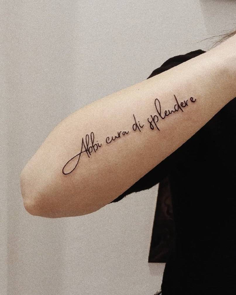 Длинная татуировка-надпись отлично смотрится и на наружной стороне предплечья