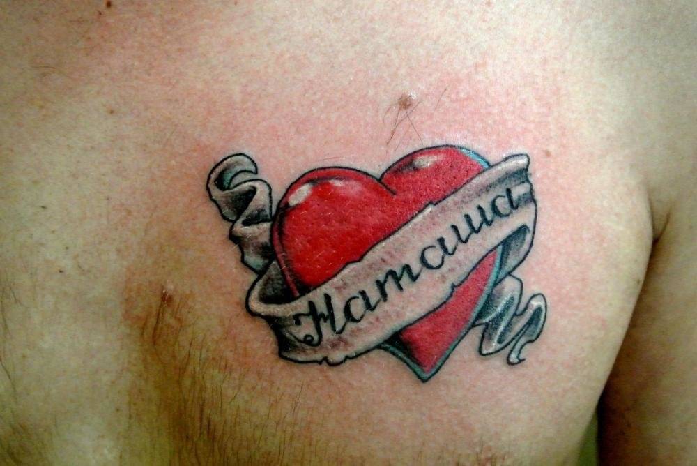 Нательный рисунок – это лучший способ проявить искренние чувства и серьезные намерения к человеку. Решится на такой шаг могут лишь по-настоящему влюбленные люди. Набив имя второй половинки, можно навсегда запечатлеть память о родном и близком человеке. Но прежде чем на это решиться, нужно хорошо подумать, ведь бывает, что чувства проходят, а тату остается на теле навсегда. Такой рисунок можно комбинировать с различными элементами, например, розой – в знак цветущей любви и сильных чувств, знаком бесконечности – символ вечной преданности, или сердцем – знак искренних и прочных отношений.