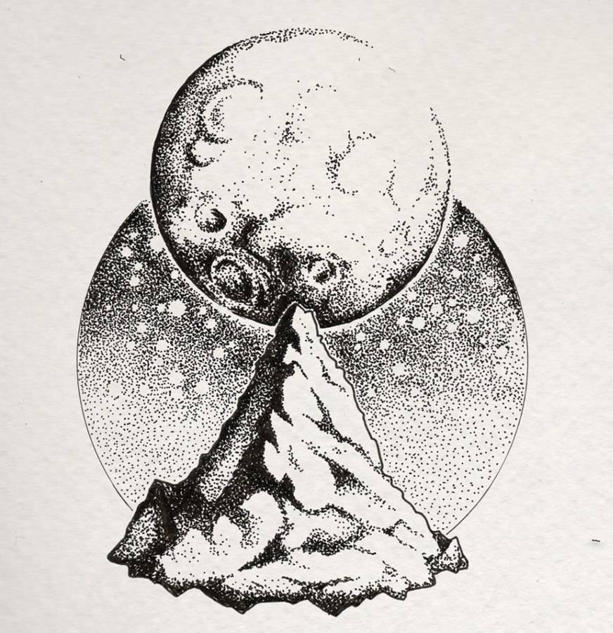 Дотворк эскизы больше похожи на работы чертежников архитекторов. Геометрия и четкость линий наполняет эскизы тату особым очарованием.