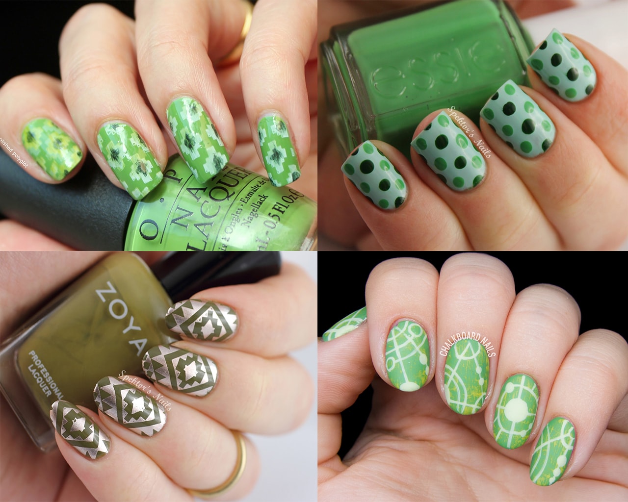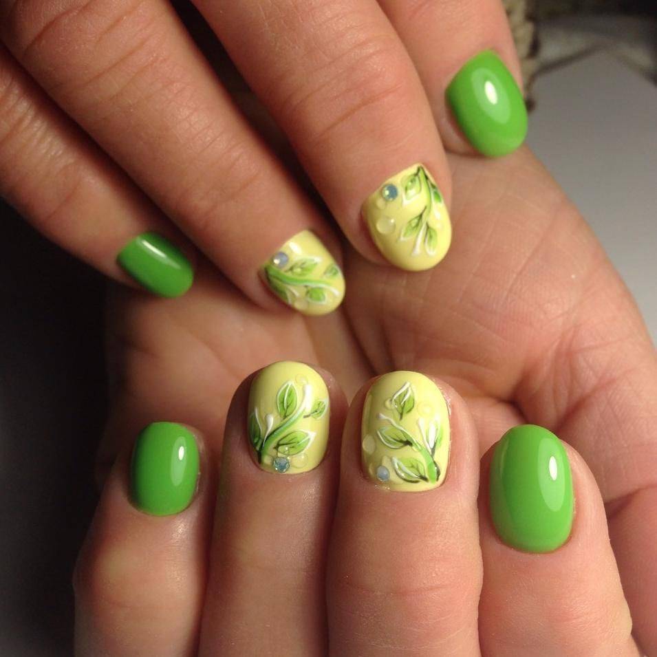 Зеленый маникюр с рисунками