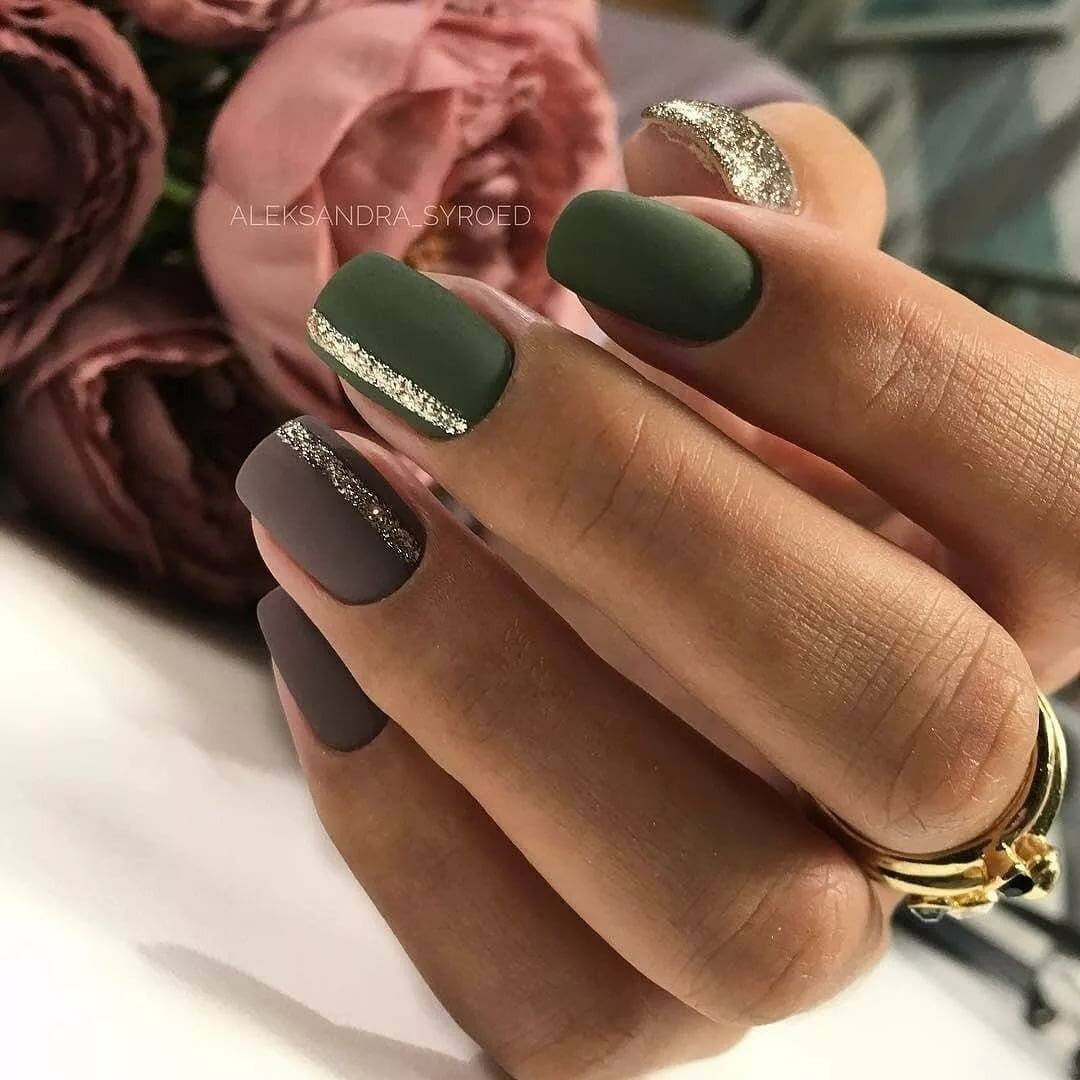 Почему бы не выбрать дизайн «разные ручки» с темно-зеленым цветом — он на пике моды? А это значит, что вы можете украсить руки по-разному. Например, соединить однотонный темно-зеленый маникюр на правой руке с бежево-цветочным дизайном на левой, чтобы выглядеть восхитительно.