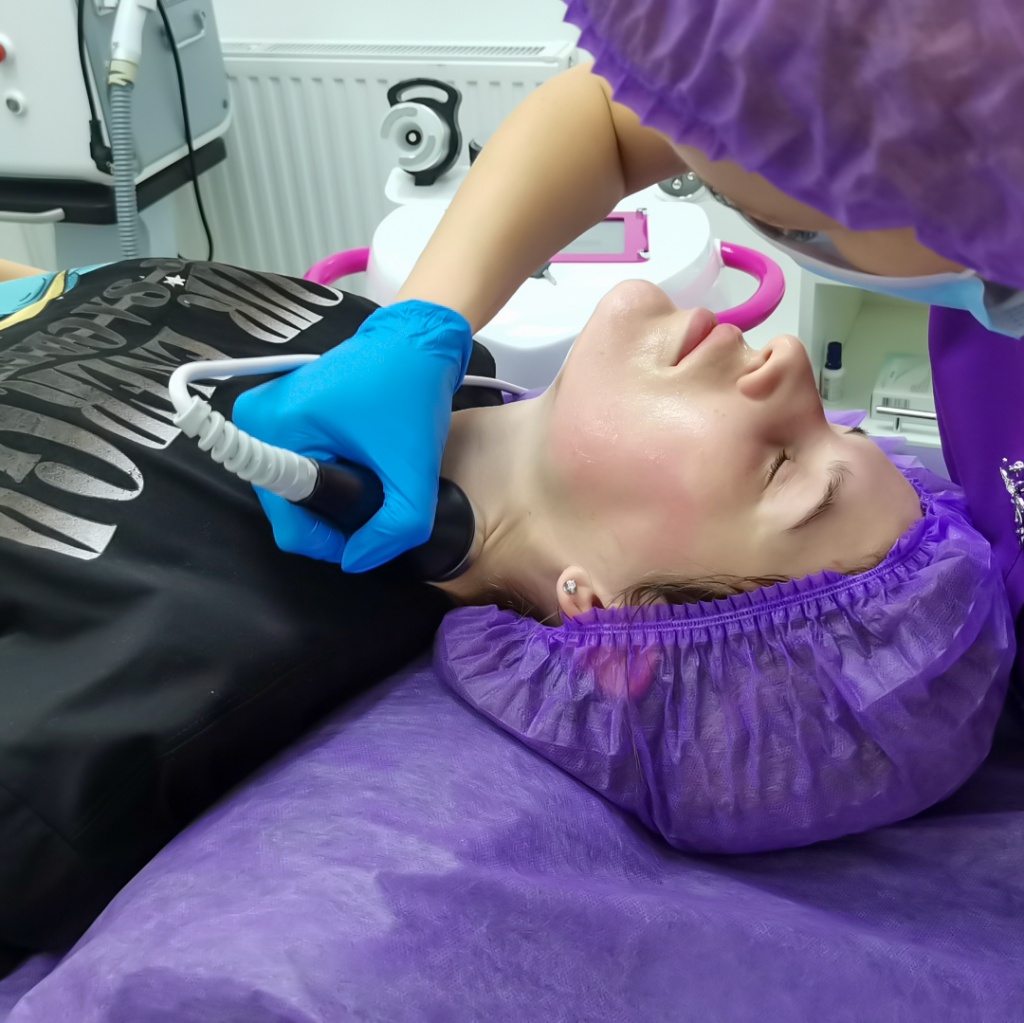 Перед сеансом очищаются кожные покровы в области обработки, убирается жир, отмершие клетки и косметические средства, на кожу наносится проводящий гель. Во время процедуры женщина находится в защитных очках, волосы убираются под шапочку.