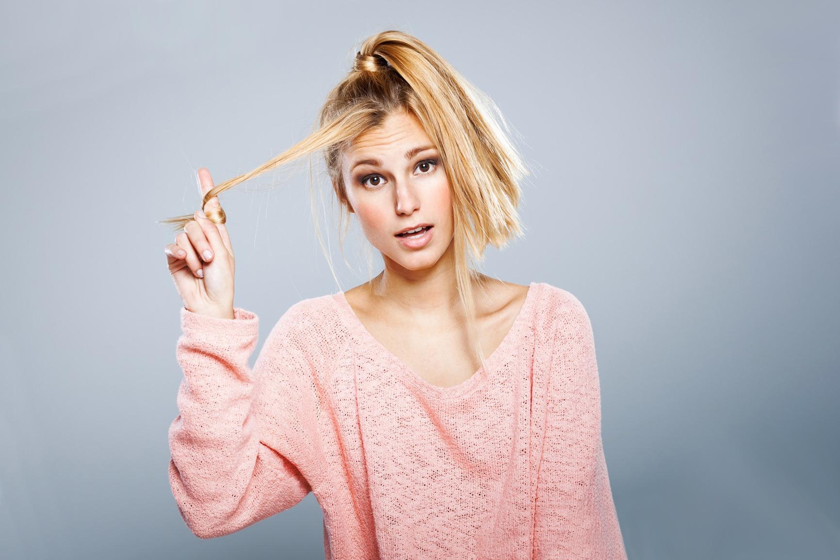 Механические повреждения. Мы сталкиваемся с этим каждый день: завивка и выпрямление утюжком без термозащиты; солнечные ванны без головного убора; ношение невидимок и металлических заколок; расчесывание мокрых волос. У женщин с удлиненной челкой бывает привычка поправлять пряди у лица. В результате разных типов механических повреждений волосы выглядят истонченными, причем плотность неравномерна: они кажутся более плотными в прикорневой зоне и почти прозрачными на кончиках.