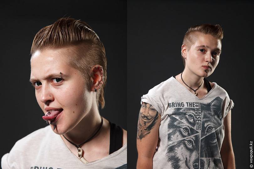 — Нет. Я просто считаю, что это модно. Страсть к пирсингу появилась у меня 12 лет назад. Позже я стала интересоваться разной литературой по пирсингу, изучала историю и решила стать мастером. Пошла на так называемый экзамен для мастеров, они задают мне вопросы разные, а я им рассказываю то, что они сами не знают. Экзаменаторы были в шоке, ну и без обучения дали мне диплом. И теперь я — мастер по тату.