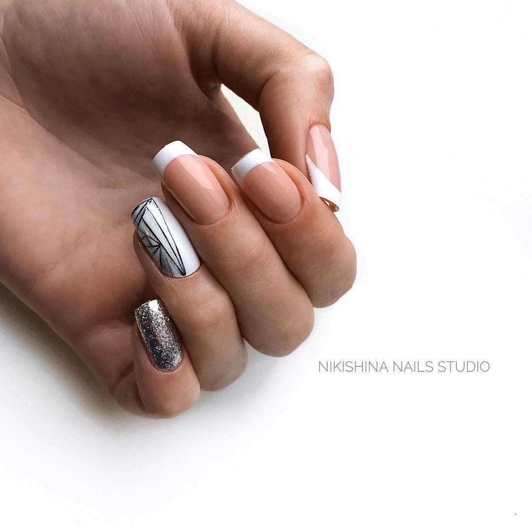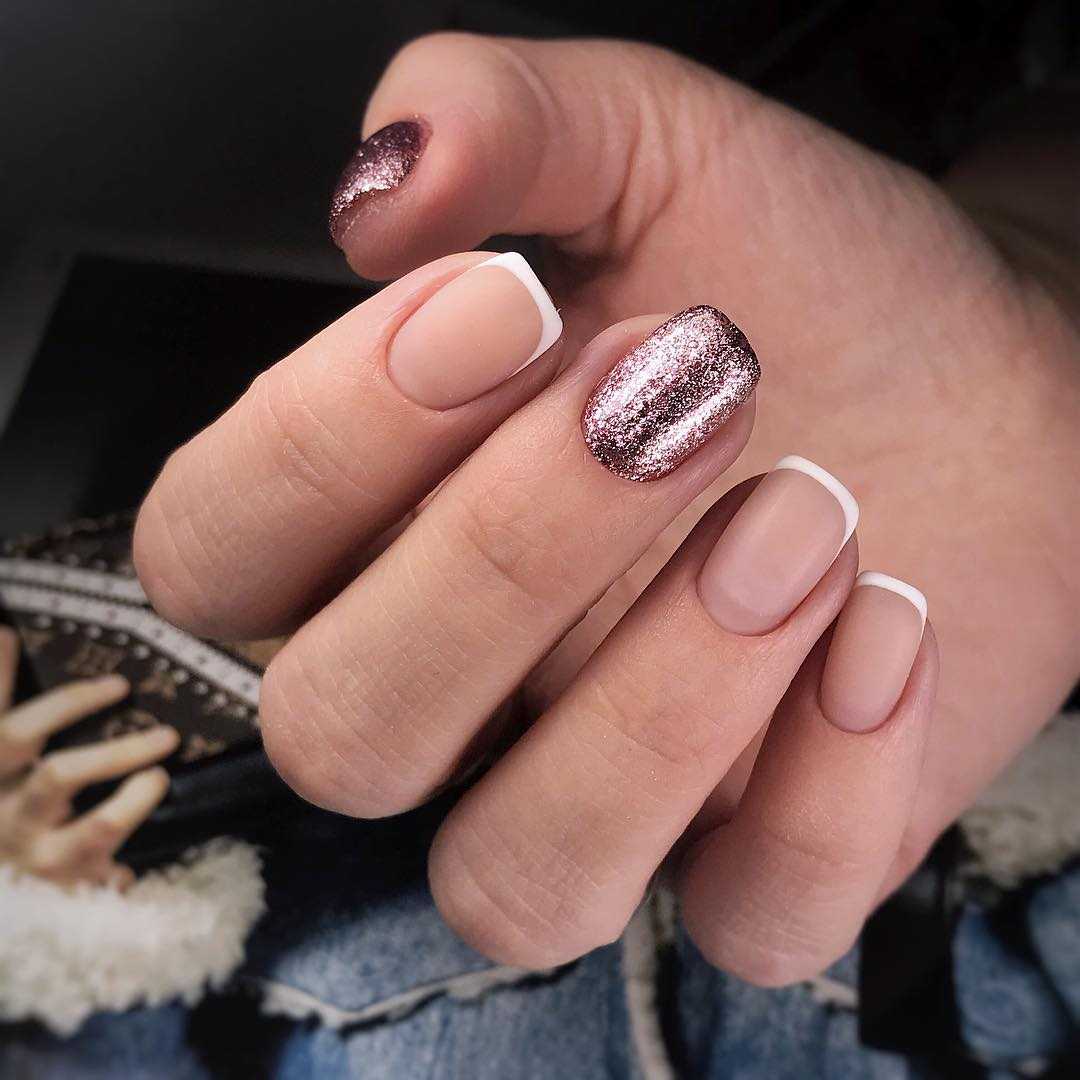- замаскировать неровности френча можно тонкой линией глиттера или блесток, визуально скрывающей погрешности;
