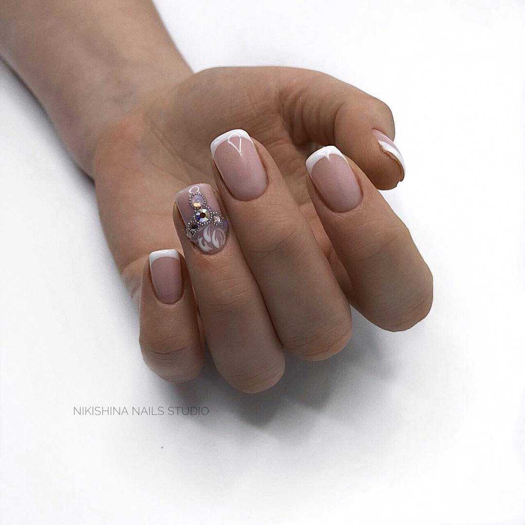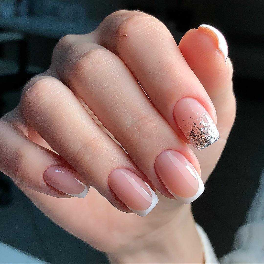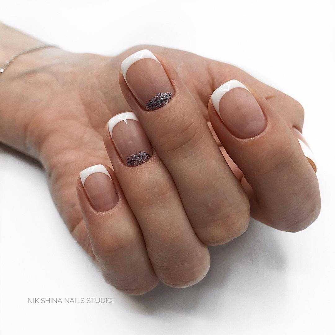 Стразы и блестки – универсальное дополнение к френчу. Несколько вариантов использования: