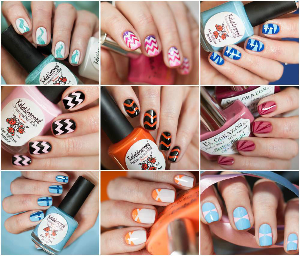 Трафарети для манікюру в домашніх умовах, зроблені зі скотчу, клейте на нігтьові пластини так, як і звичайні заготовки. Давайте повністю висихати кожному шару основи, лаку, закріплювача, які наносите. Скотч знімайте акуратно, але різко, щоб точно по контуру відокремити його від нігтя. Чи не заступайте лаком занадто далеко на клейку стрічку, інакше буде складно рівно відокремити, і манікюр вийде з рваними краями.