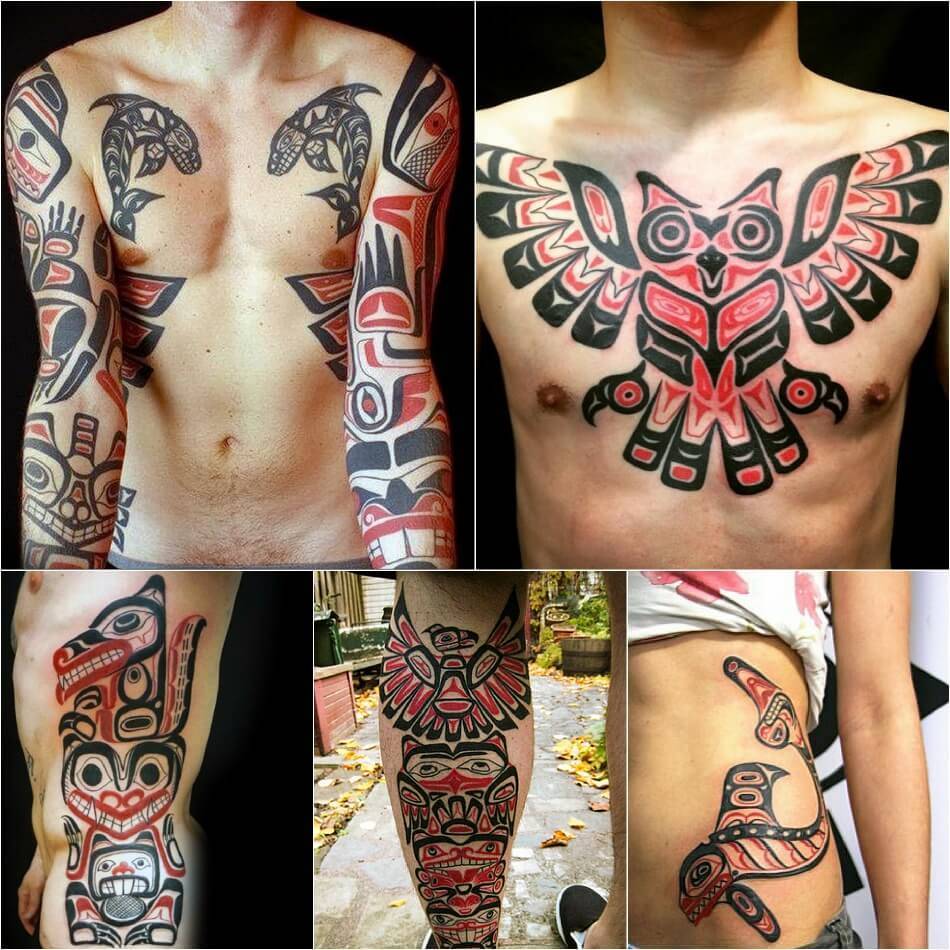 Родоначальником является индейский народ Хайда. Эти тату отличаются оригинальностью, яркими красками и четкими линиями, конкретной символикой. Допускается использование красного, синего и зеленого в цветовой палитре. Наносились рисунки птиц, животных, морских обитателей.