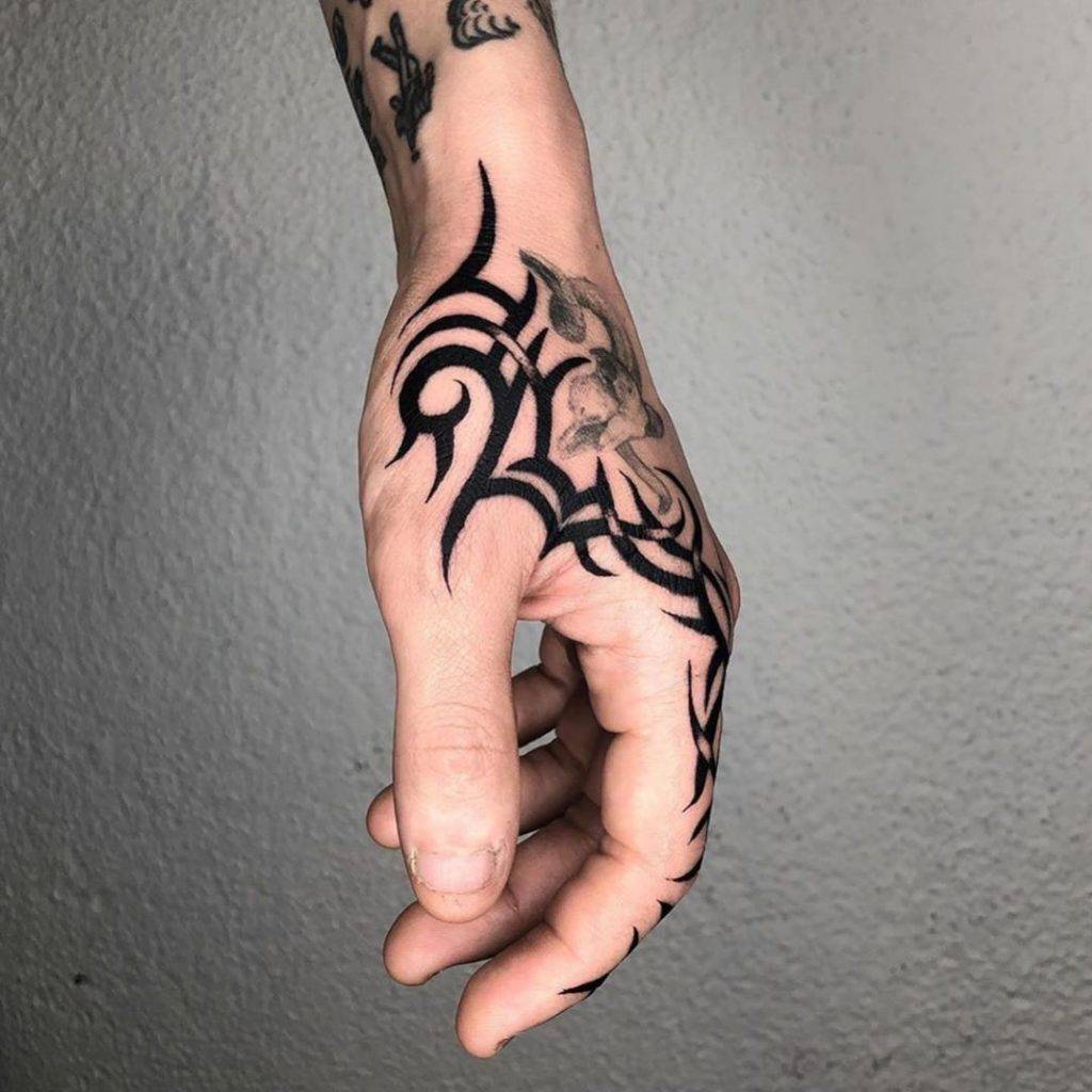 Трайбл будет гармонично смотреться на любой части тела, ведь площадь наносимой татуировки не обязательно должна быть большой. Небольшие геометрические узоры могут украсить ваши руки, ноги, сгибы локтей и колен, а также область шеи.