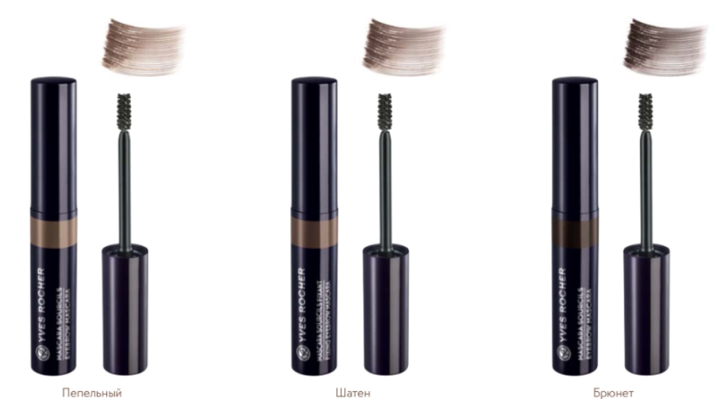 Тушь этого производителя выпускается в трех натуральных оттенках. С ее помощью можно с минимальными усилиями придать бровям четкую форму и натуральный внешний вид. Для этого косметическое средство имеет удобную маленькую моделирующую кисточку. Несомненным преимуществом тушей для ухода за бровями бренда Ив Роше является стопроцентно натуральный состав ингредиентов. Текстура у косметического средства очень легкая, благодаря чему оно наносится равномерно.