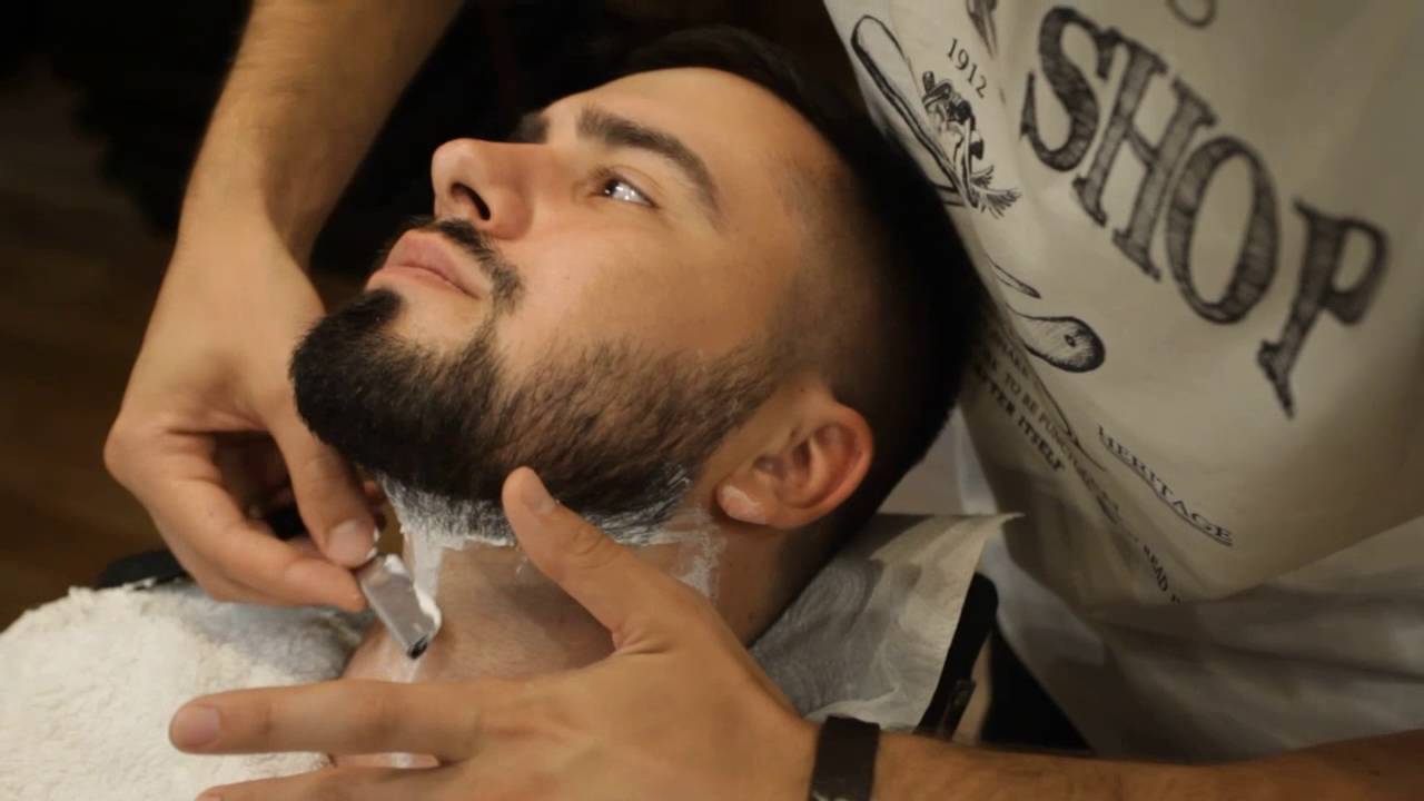 Отдельные участки — например, середину щеки — подбривают против роста волос.