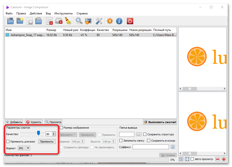 Caesium – специализированный софт для пакетной компрессии графических файлов. Он не занимает много места в операционной системе, нетребователен к ресурсам ПК и предназначен для бесплатного использования. Кроме сжатия инструмент располагает средствами для значительного уменьшения размера изображений. Поддерживаются самые распространенные форматы – JPEG, PNG и BMP.