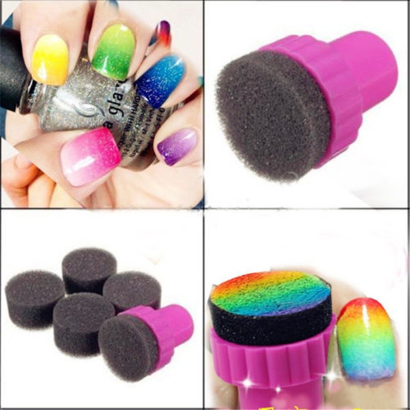 Магазины адаптируются под все потребности покупателя. Градиентный маникюр не стал исключением. Для того, чтобы сделать плавный переход от одного цвета к другому, можно воспользоваться специальным устройством – штампом для маникюра. Такое устройство – это усовершенствованный аналог простого спонжа. Основная его часть – это каркас из пластика, который располагает специальным фиксатором для удобного самостоятельного маникюра. Его легко держать, пальцы противоположной руки не будут измазаны в лаке. Кроме того, его размеры максимально адаптированы под площадь ногтя.