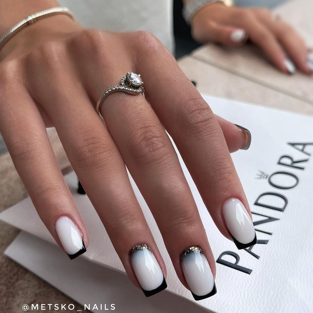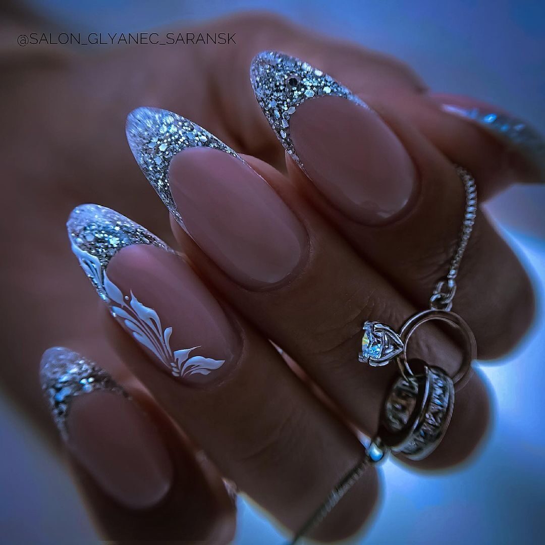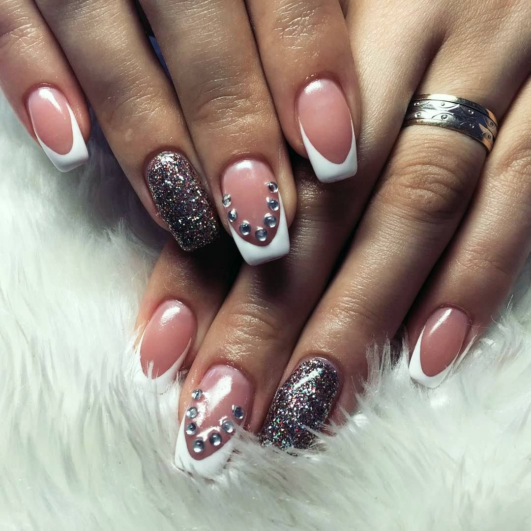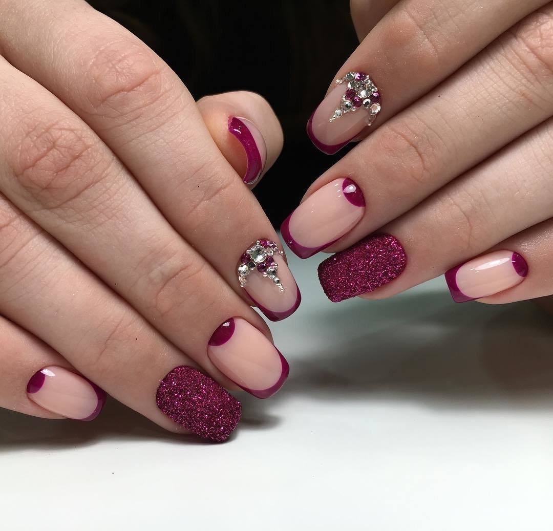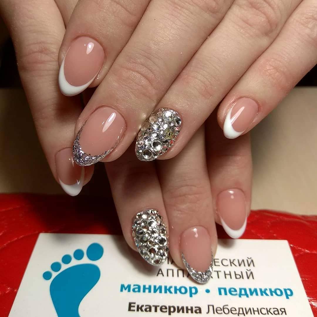 Французский маникюр 2022 с блестками