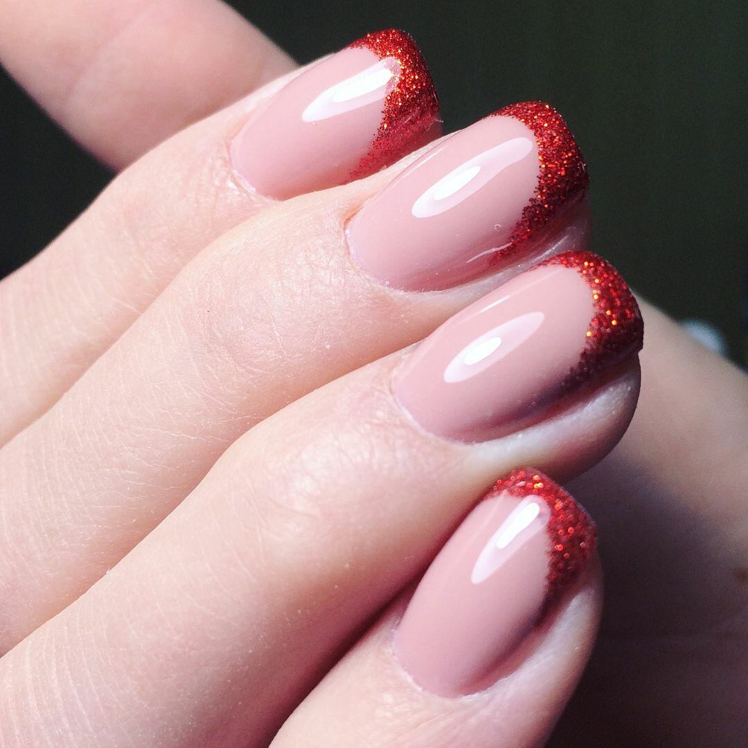 Еще проще создать французский маникюр с помощью глиттера. Блестки формируют размытый контур, и маникюр получается более аккуратным: