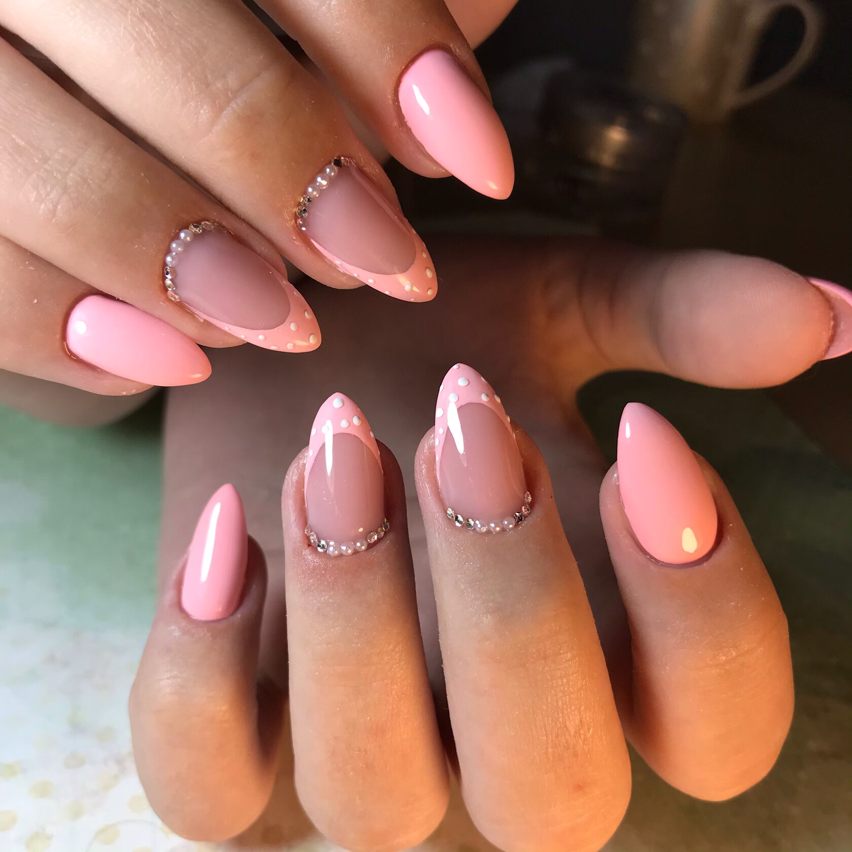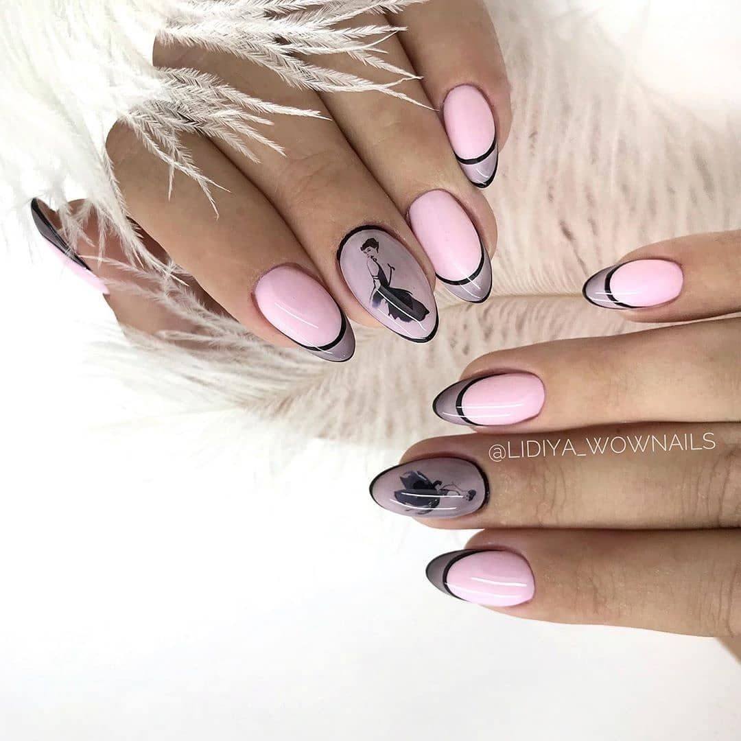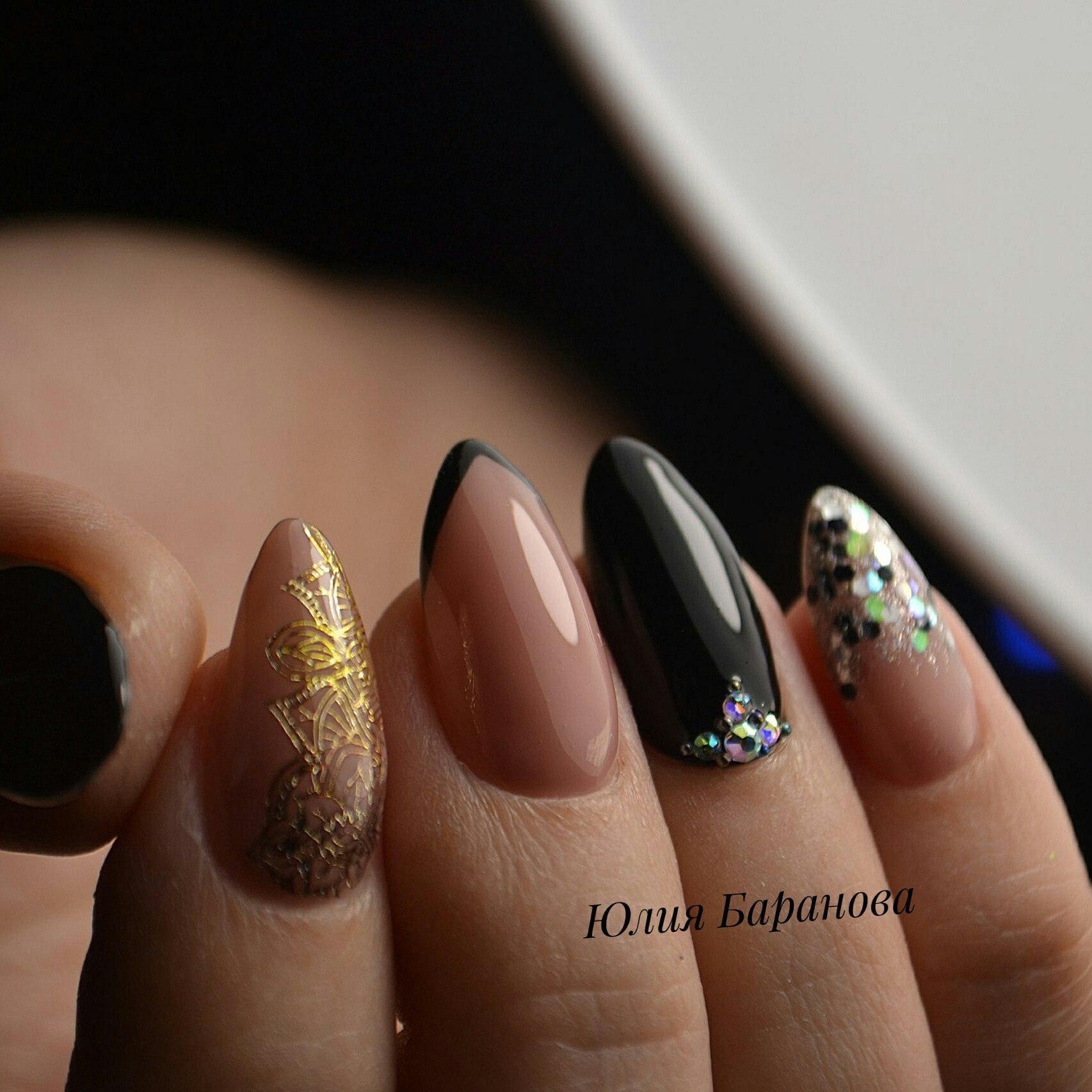 Маникюр на миндалевидные длинные ногти